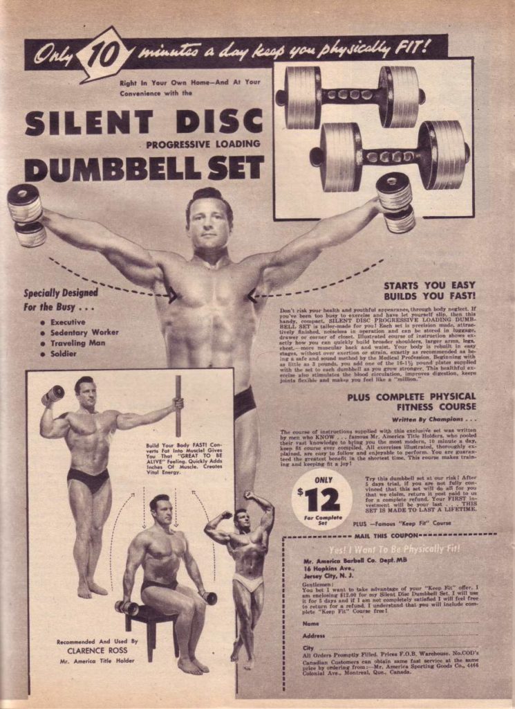 Clarence Ross was an avid paid promoter of anything bodybuilding and frequently appeared for Joe Weider’s weight system and magazines. From 1947-1951 he was almost inescapable in the bodybuilding scene, and still frequently appeared well into the mid 50s.