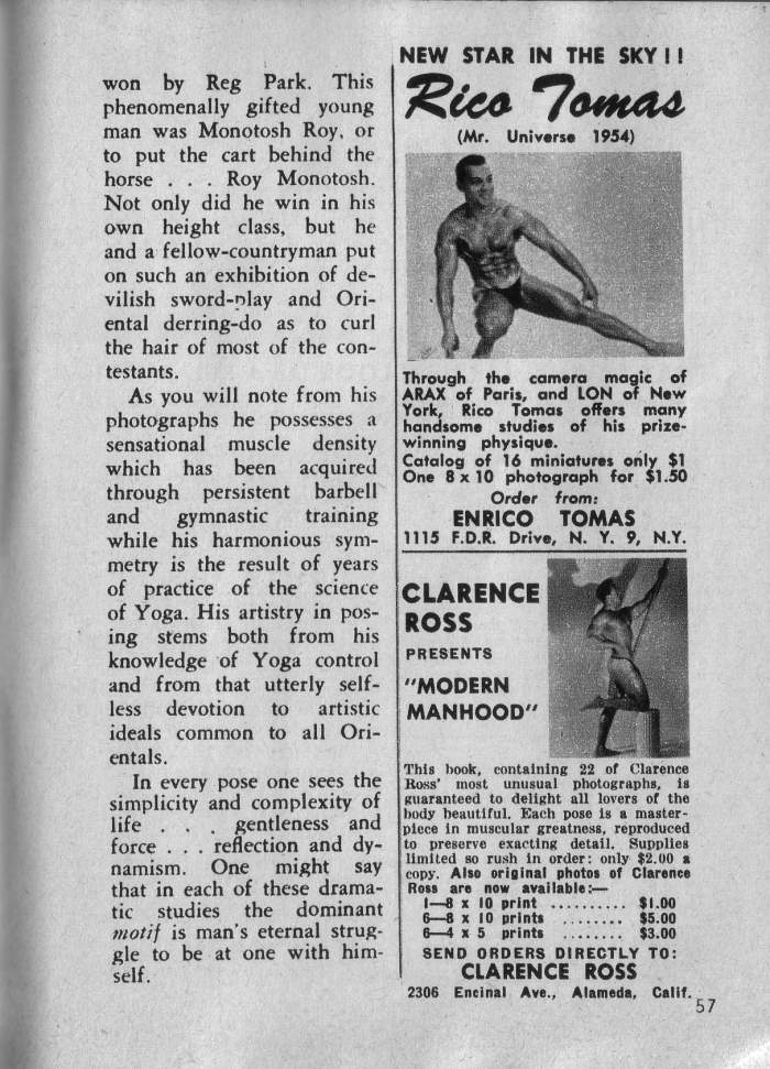 While Clarence Ross himself became a writer and mentor to the entire 1950s generation of bodybuilders.