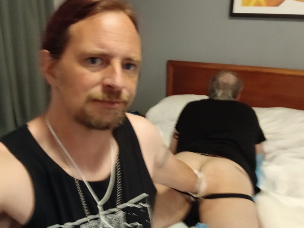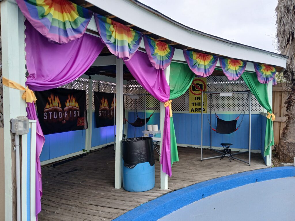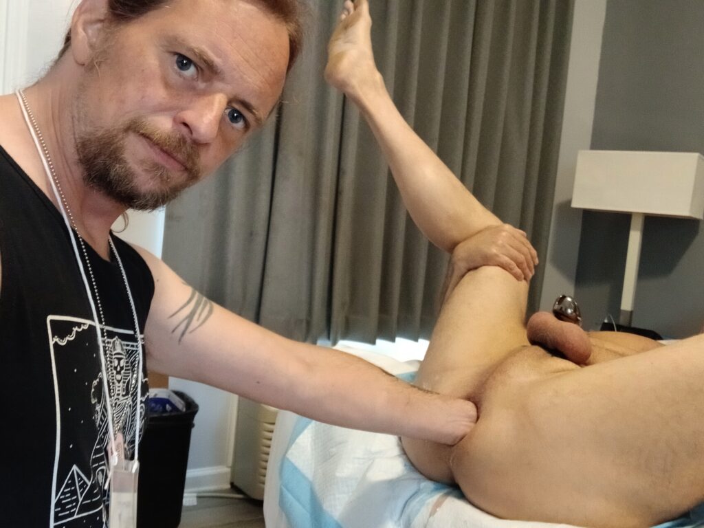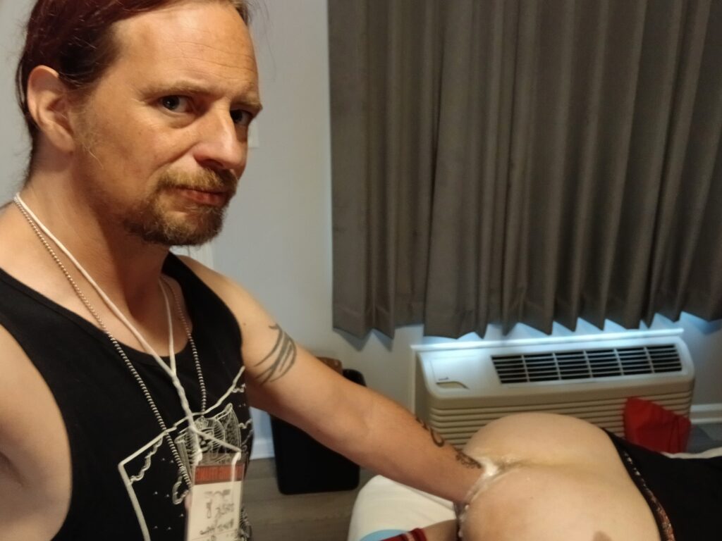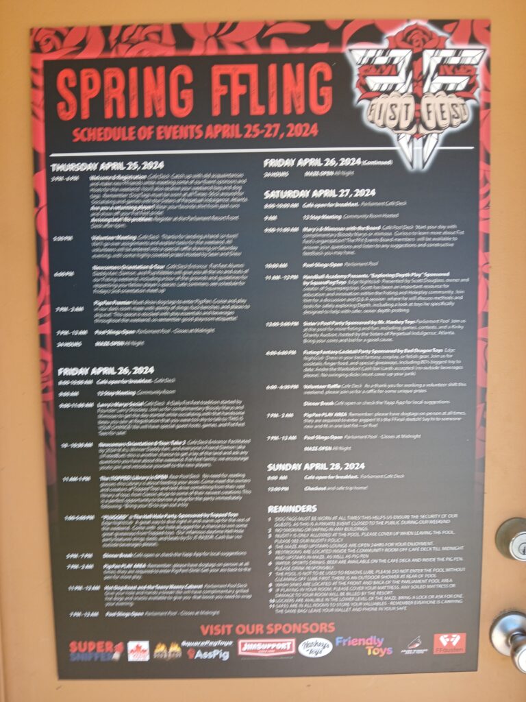 After which I prowled the pig pen and got wrapped up in being one of 7 tops all fisting a bottom going around 7x on a lazy suzan. I got 15 sessions in the first day.