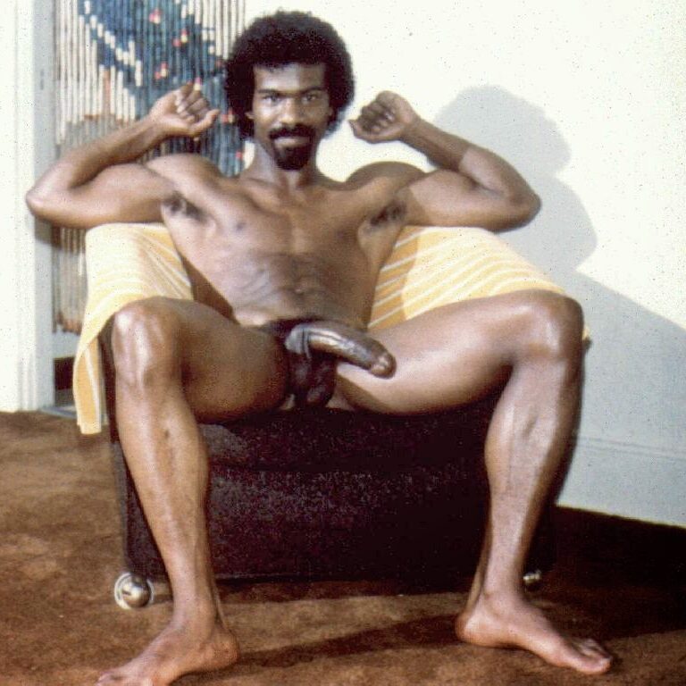 Hung black model Womak poses for David Hurles of Old Reliable in the late 70s or early 80s.