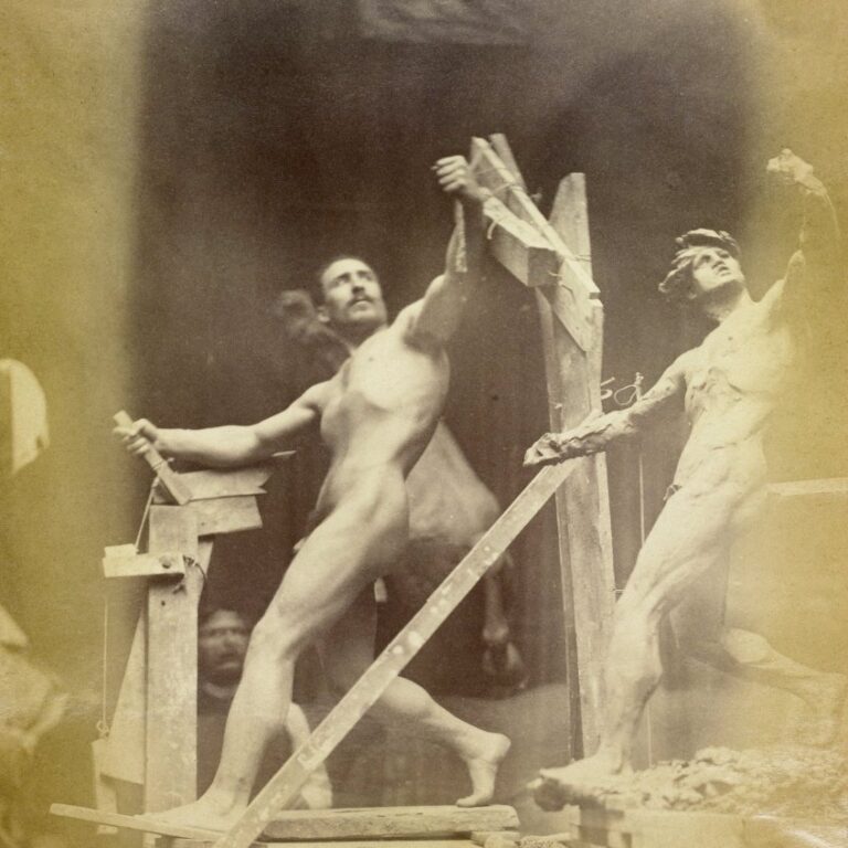 In the 19th century, male nudes were usually taken with artistic, rather than pornographic intent. These works by Jaques LaLaing exemplify the tradition of taking nudes as a substitute for a life model for sculpting, drawing, and painting male nudes.