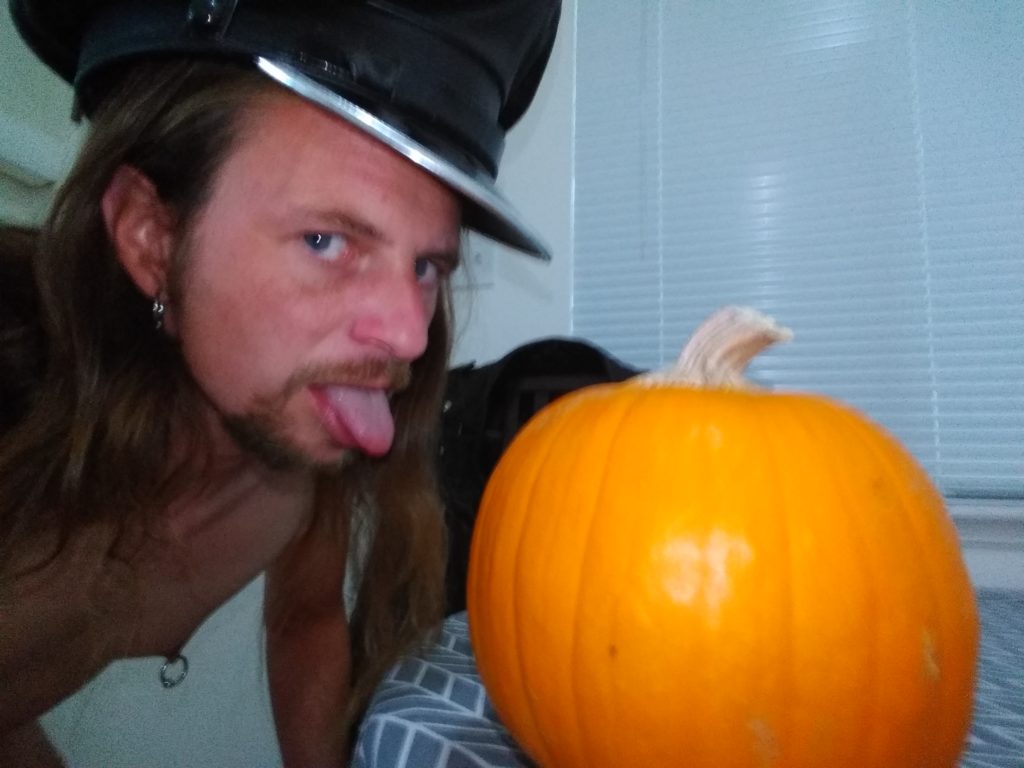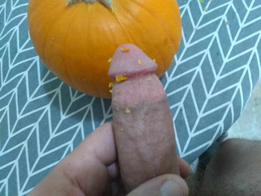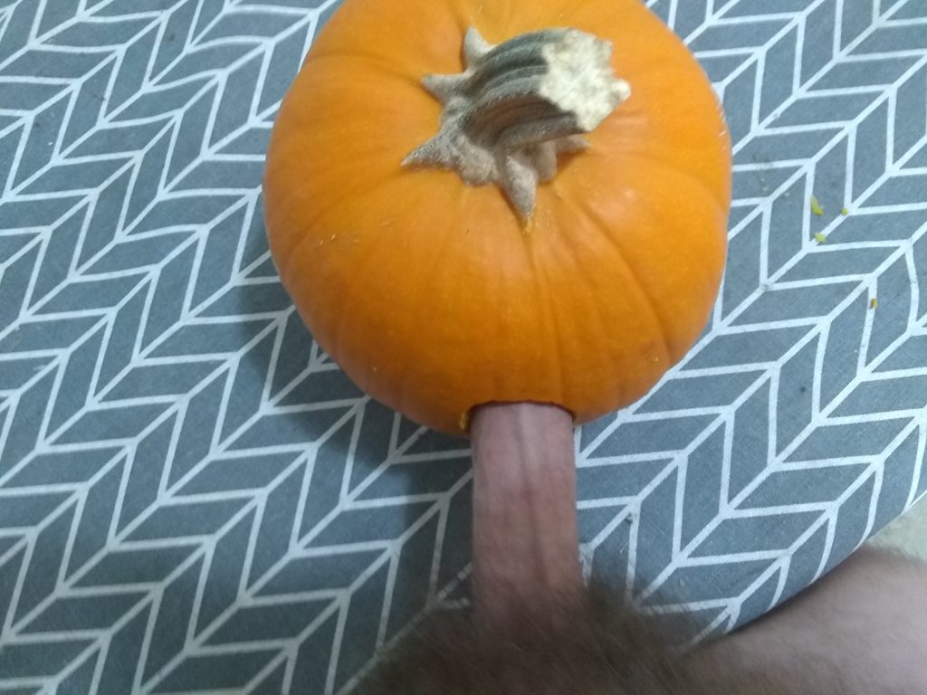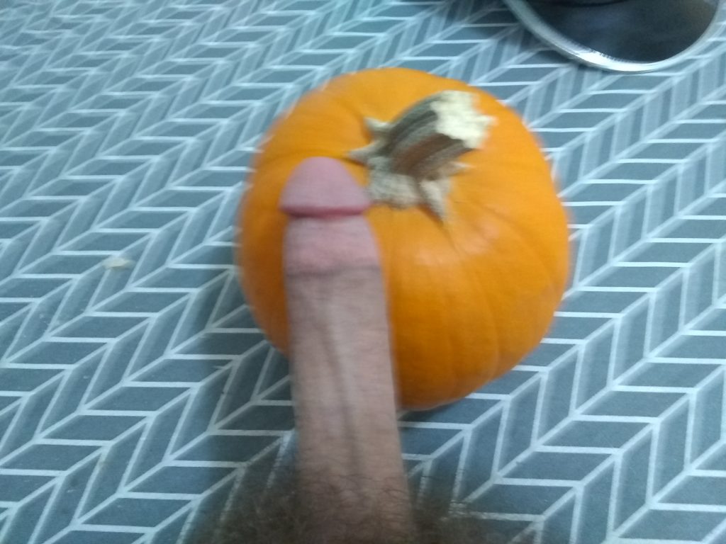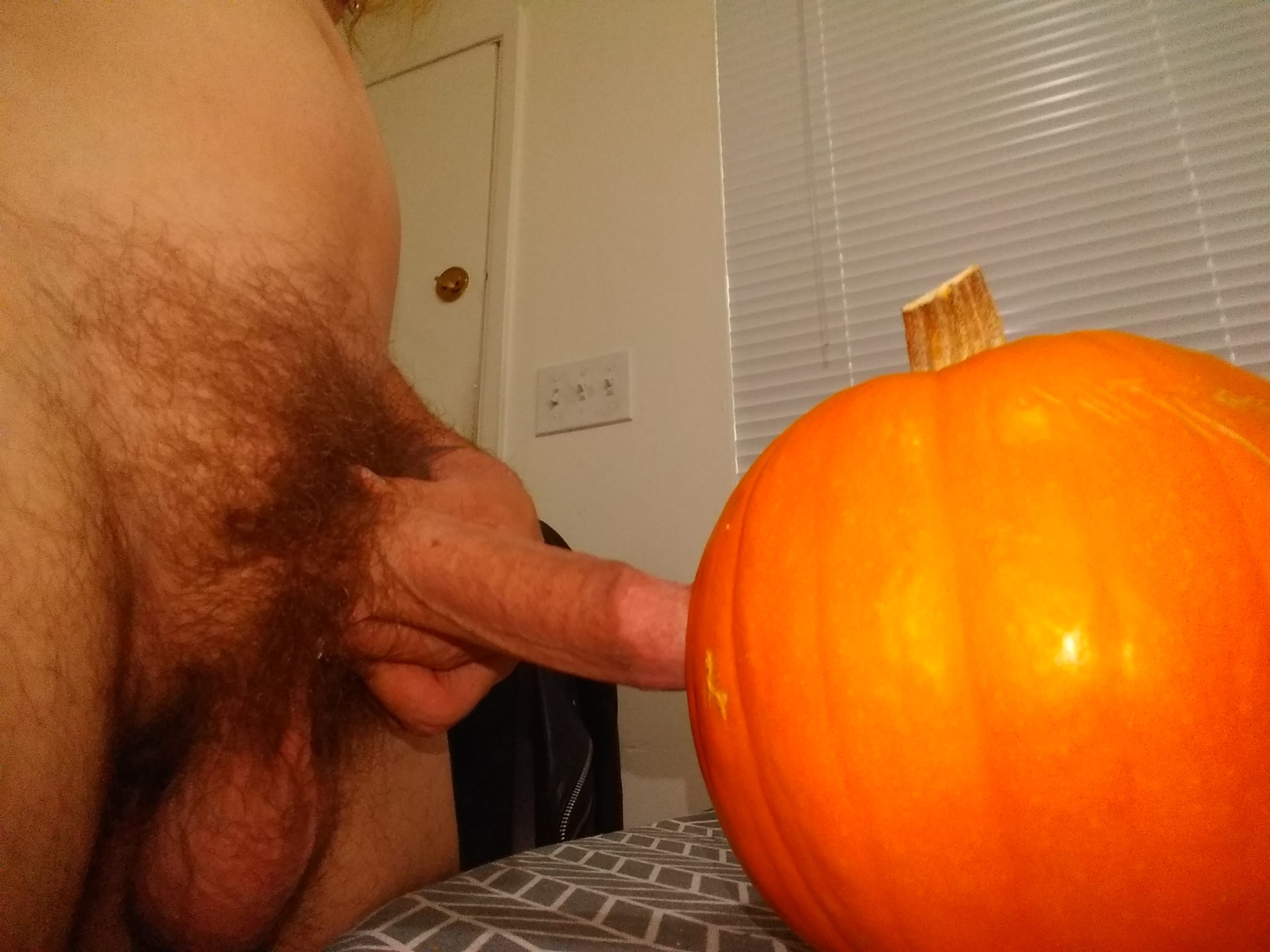 Put a hole in the other side of the pumpkin and we,ll both fuck it at the same time sexy guy