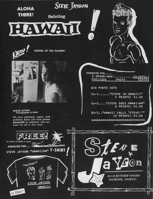 Steve Jayson ran one of Hawaii’s first physique photography guilds and photographed many men in the late 1950s and early 60s.