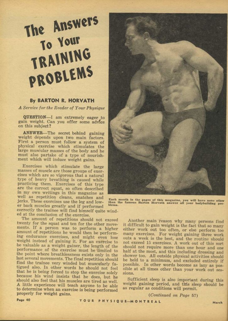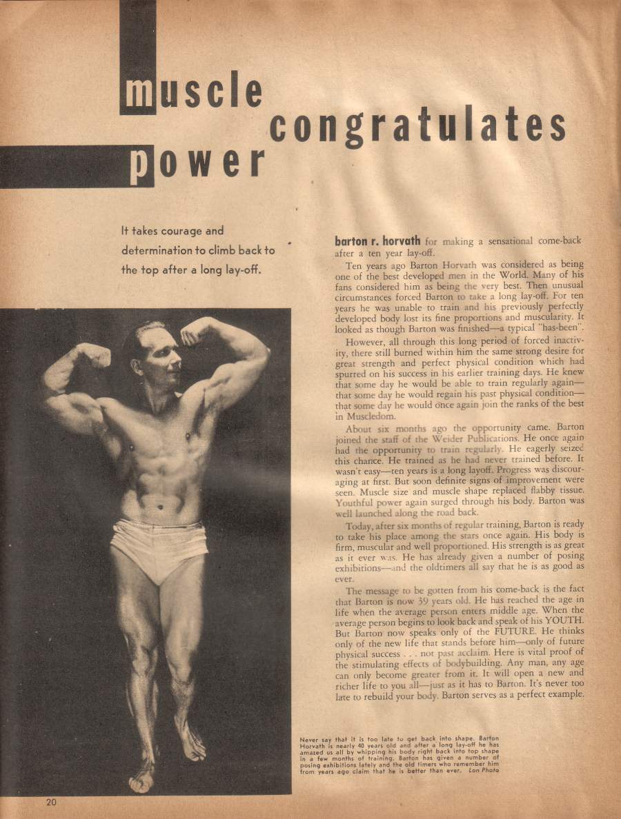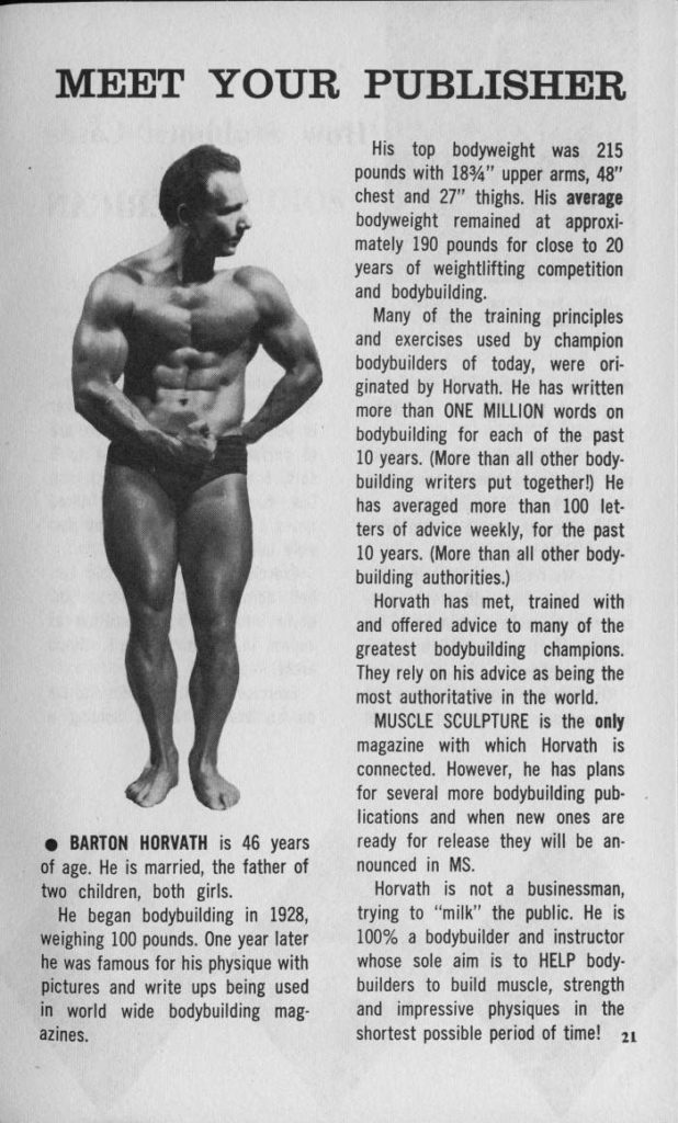Barton Horvath in Strength and Health by JackPosted on September 24, 2022September 18, 2022 Barton Horvath was one of the original bodybuilders who popularized the sport back in the 1930s. Here he is in May 1938’s “Strength and Health”