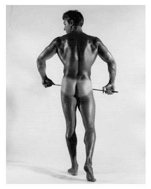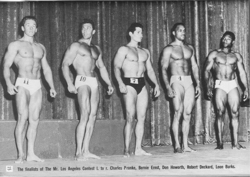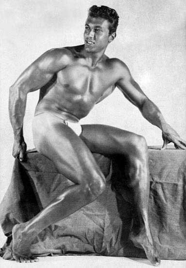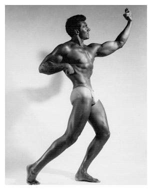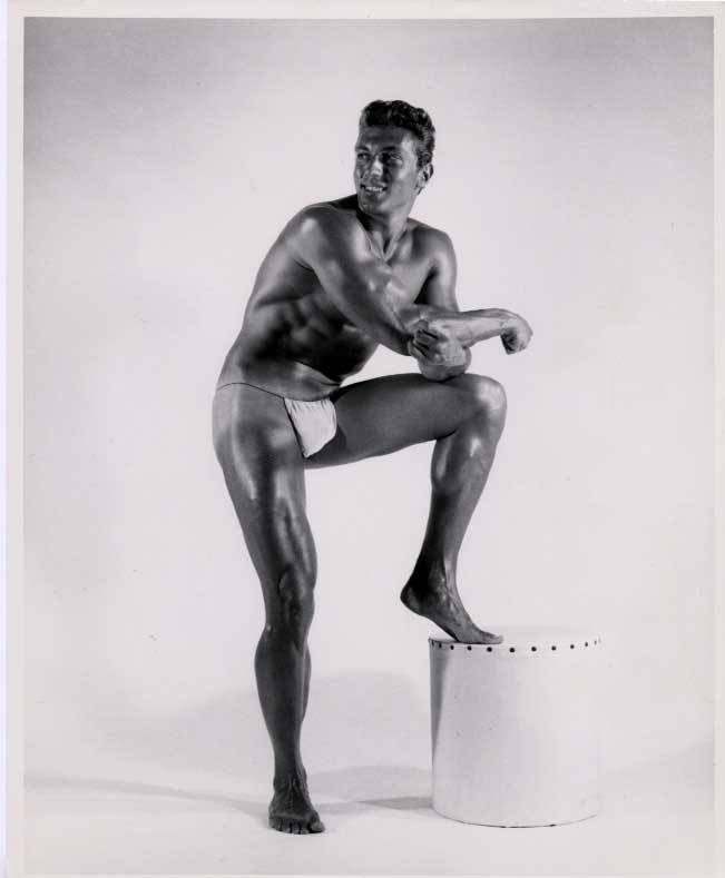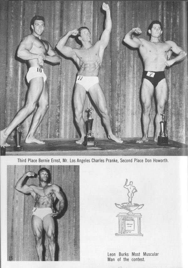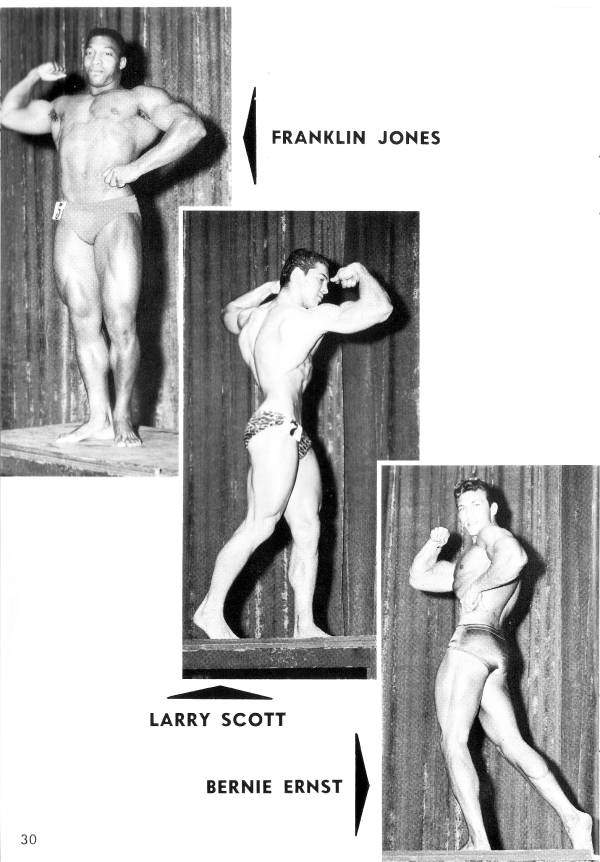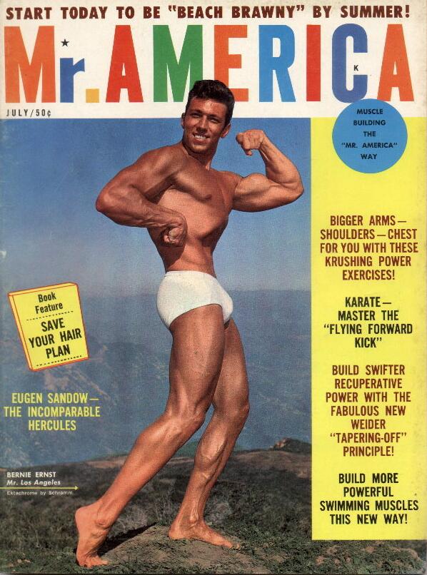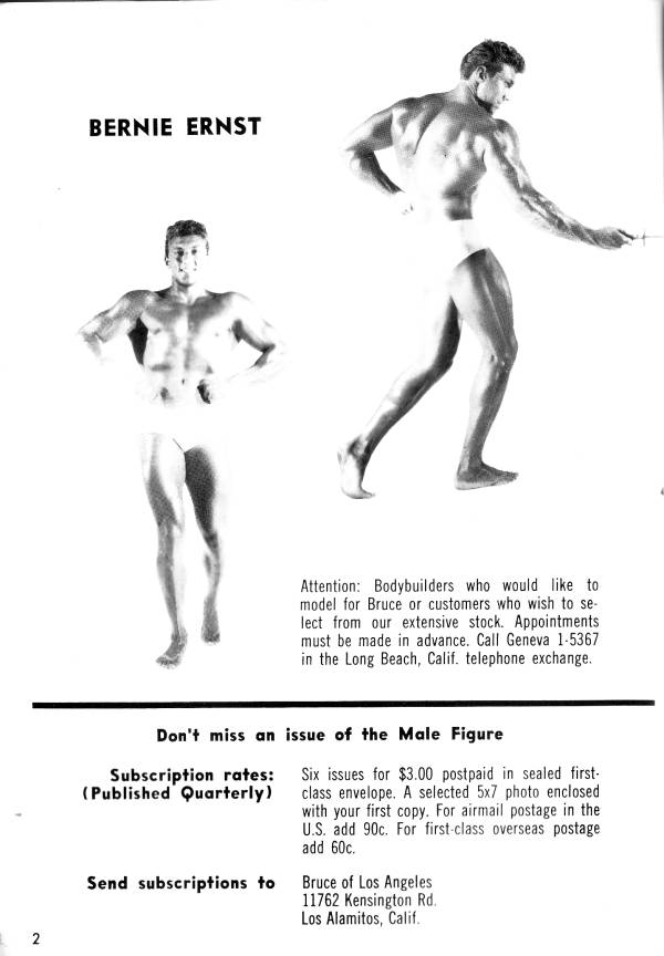 The merging of brain and brawn is the rare accomplishment that we find in Bernie Ernst. This Ohio-born lad of German descent played baseball, basketball, and lifted weights in high school. He came to California to attend college. He has had three years of Pre-Med, and two years of Chiropractic School-all straight “A”. Bernie is now 23 years old. 5’10” tall, and weighs 175 pounds. Like many people who come from the midlands. Bernie loves the beach and lives nearby. We don’t have to tell you that this chap has an excellent physique the evidence is in these photos. We predict that here is one of the stars of the future and not so far future at that.