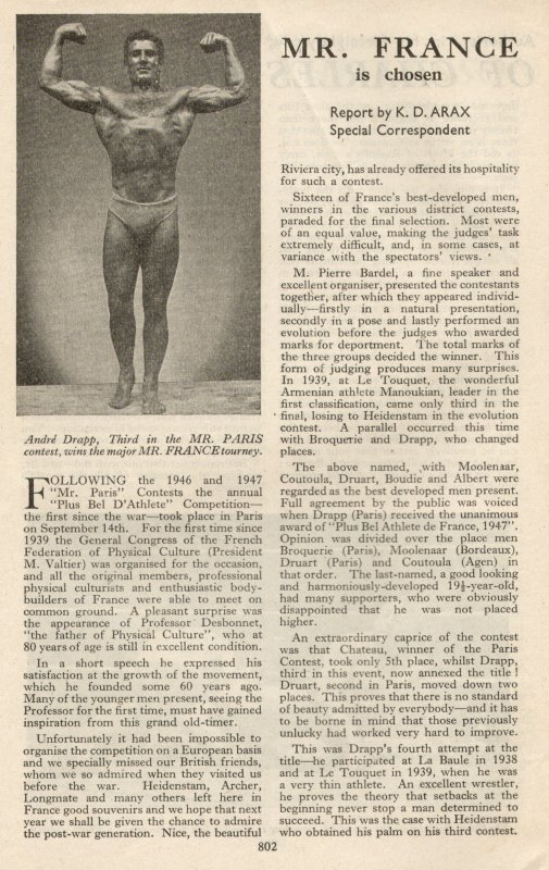André Drapp, Third in the MR. PARIS contest, wins the major MR. FRANCE tourney. places.