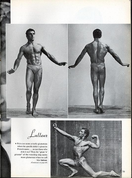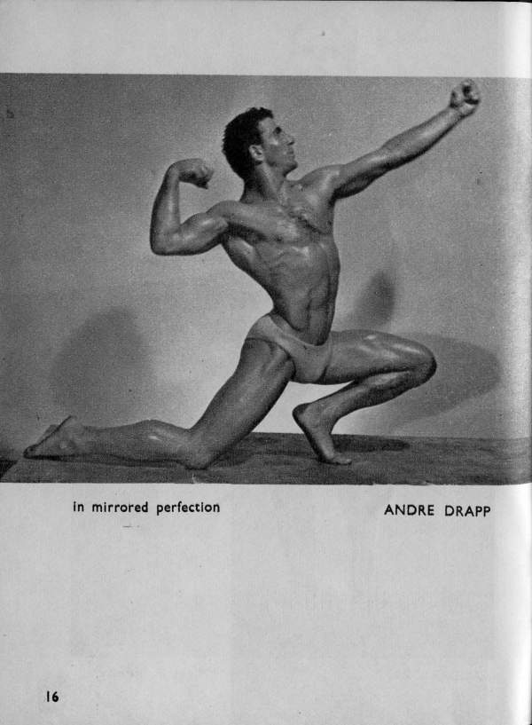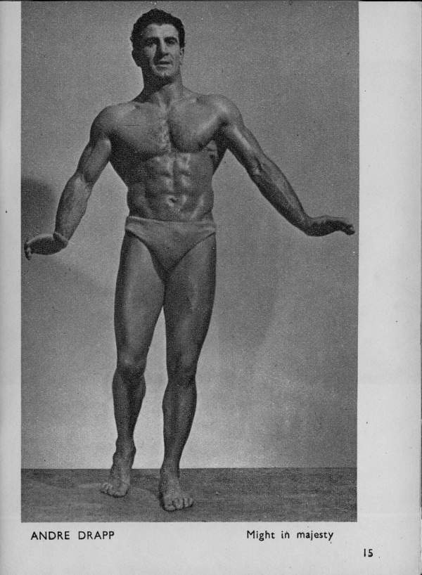 The above named, with Moolenaar, Coutoula, Druart, Boudie and Albert were regarded as the best developed men present. Full agreement by the public was voiced when Drapp (Paris) received the unanimous award of “Plus Bel Athlete de France, 1947”. Opinion was divided over the place men Broquerie (Paris), Moolenaar (Bordeaux), Druart (Paris) and Coutoula (Agen) in that order. The last-named, a good looking and harmoniously-developed 19-year-old, had many supporters, who were obviously disappointed that he was not placed