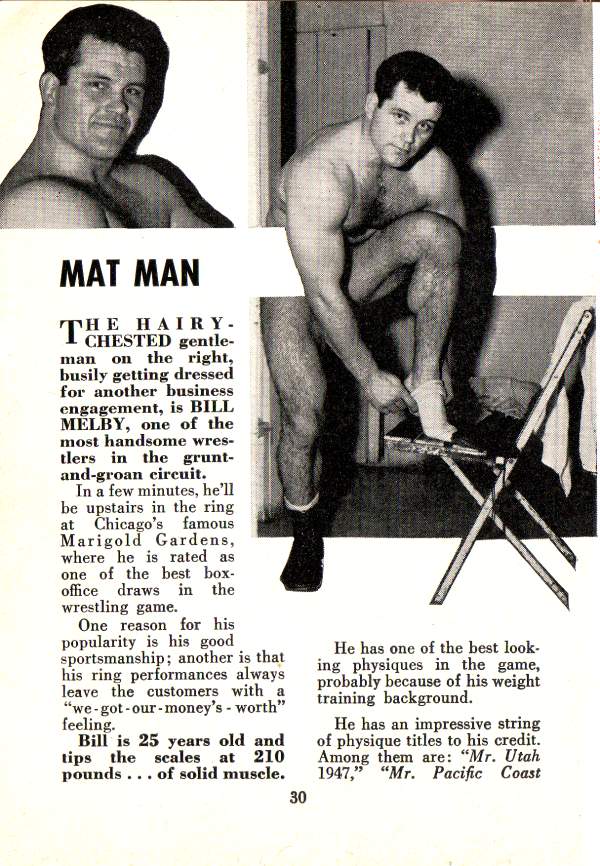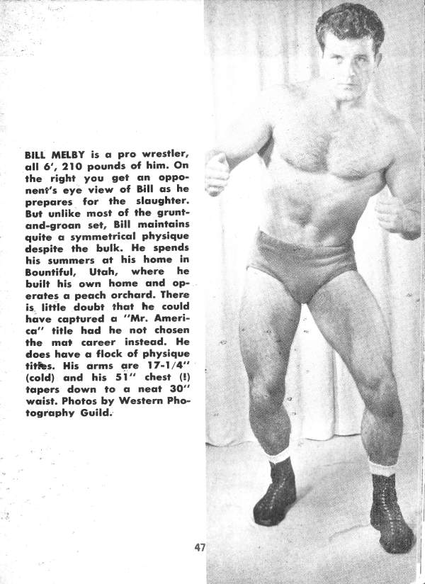 Bill Melby, wrestler by JackPosted on November 13, 2022July 17, 2024 1950s wrestler Bill Melby. Photos by WPG, Bruce of LA and Wrestling Review.