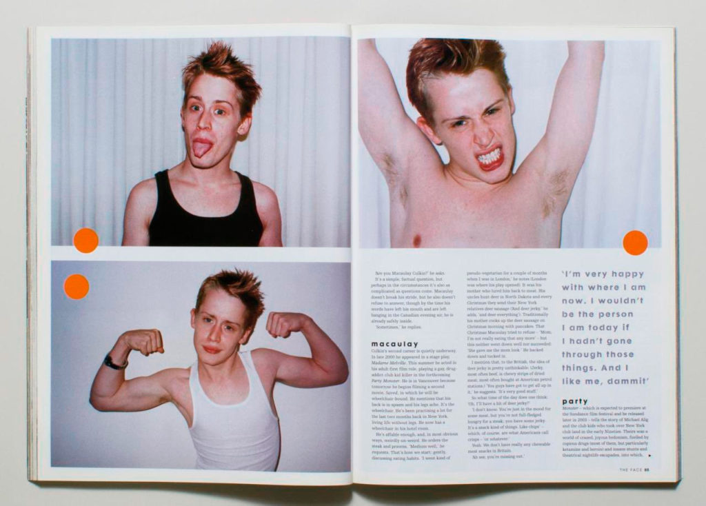 Macaulay Culkin by JackPosted on November 14, 2022October 23, 2022 Former child star Macauley Culkin featured in The Face in 2002 in his Party Monster era.
