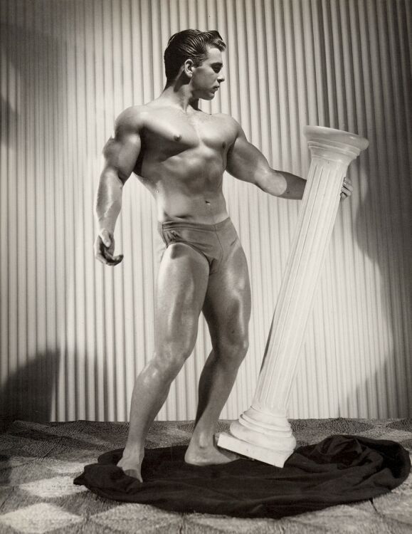 Bruce of LA Studio shots by Robert KurtzPosted on January 27, 2023August 21, 2023 Black and white in studio posing strap images taken by Bruce Belas (Bruce of LA) for Kensington Road in the late 1950s.