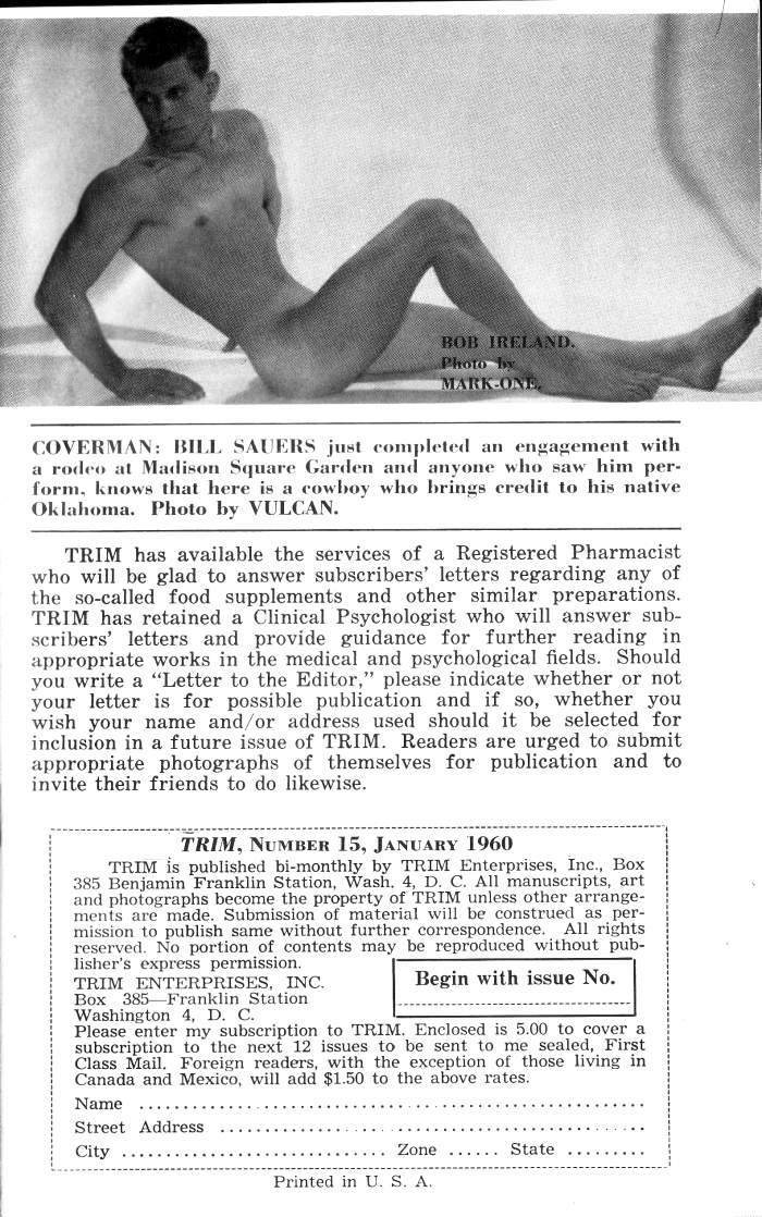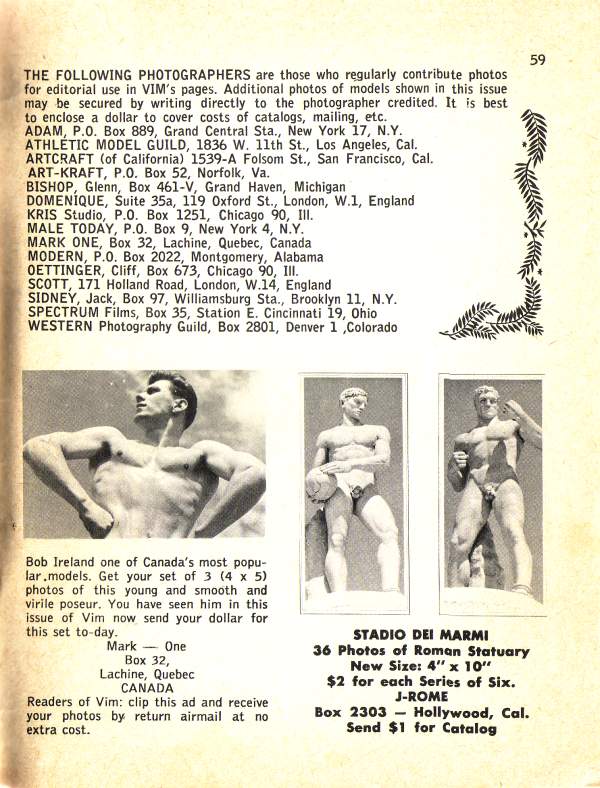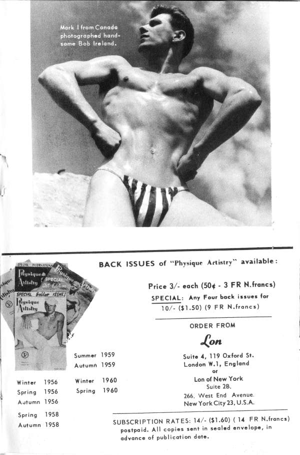Bob Ireland by Mark One by JackPosted on March 7, 2023August 21, 2023 Canadian bodybuilder and gymnast Bob Ireland poses for Mark One Studios in the early 50s.