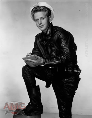 Terry Caldwell models in cop themed leathers for Bob Mizer of AMG.