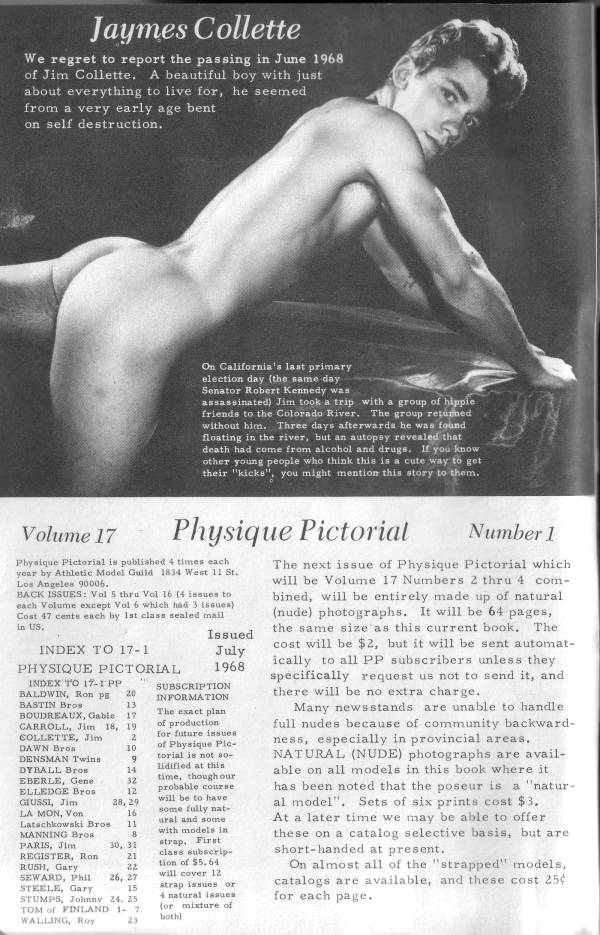 Jim Collette Nude by Robert KurtzPosted on September 8, 2023August 15, 2023 1960s nudes of Jim Collette taken by Bruce of LA and AMG.