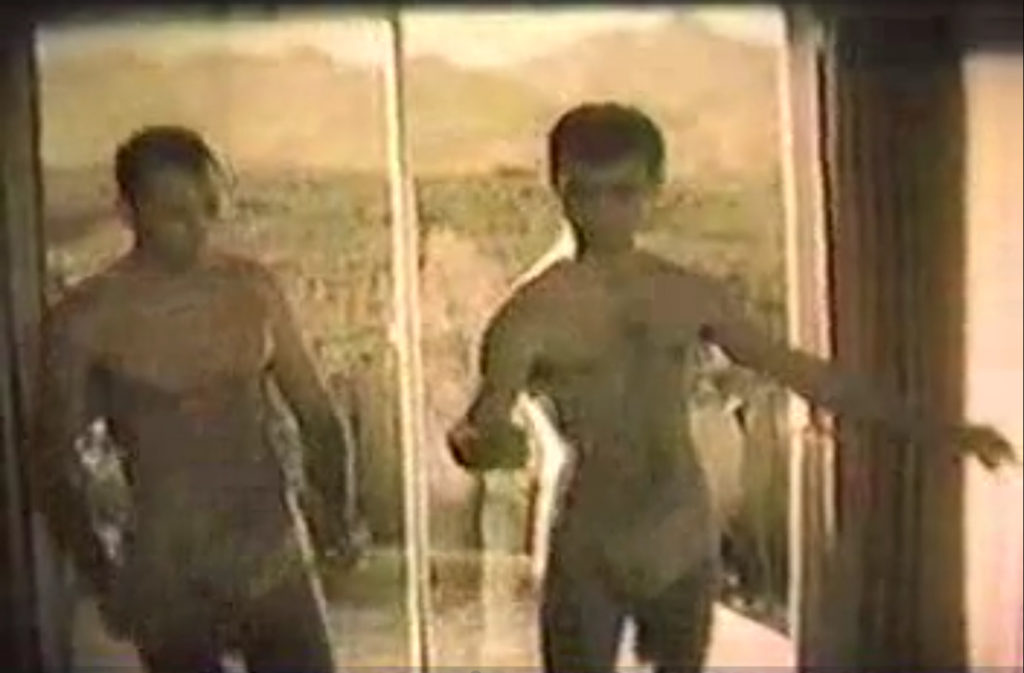 Aspiring actor Roger Cote (better known as Roger Conte) poses with bodybuilder Bob McNamra in the 8mm reel Vegas Nights by TYC