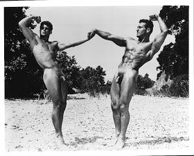 Jack Thomas poses nude with bodybuilding guru Jack Lalanne in 1948 for Russ Warner.