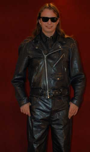 Jack in Black Leather by JackPosted on October 6, 2023July 26, 2023 Posing in black leather on a red backdrop, September 15, 2005. Photos by Daddy Tiger.