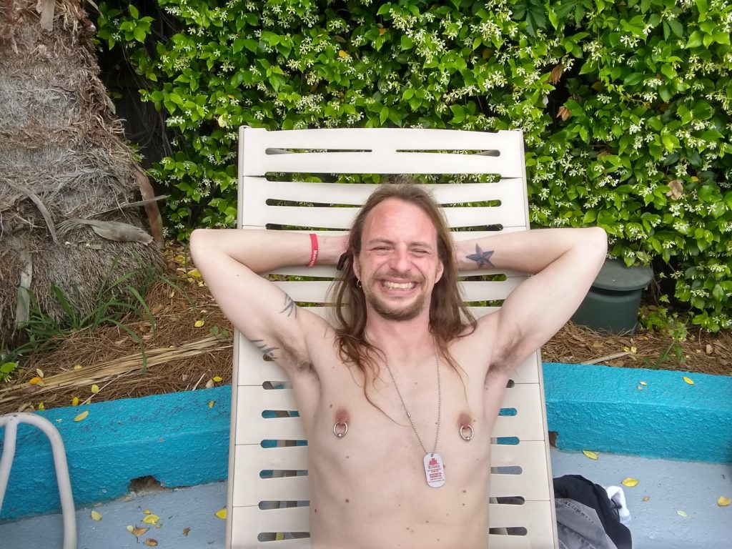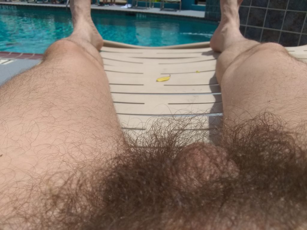 The pool at Parliament Resort is normally a no photography zone but I got permission to have someone take my pictures as I sunbathed nude here in June of 2019.