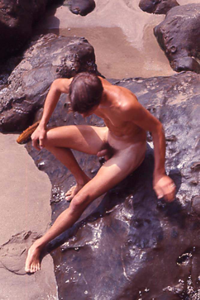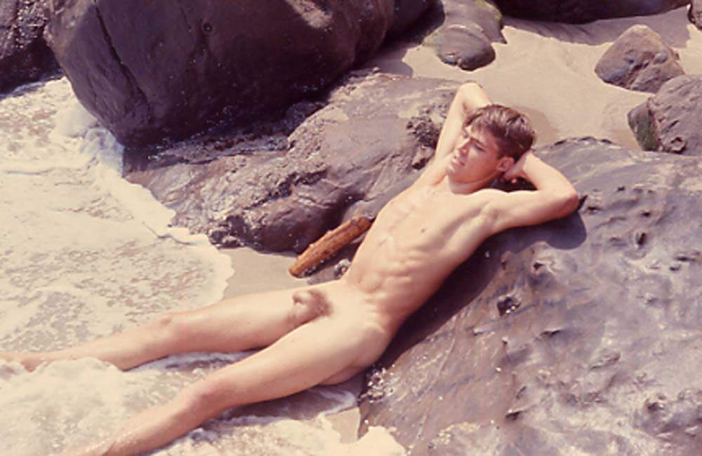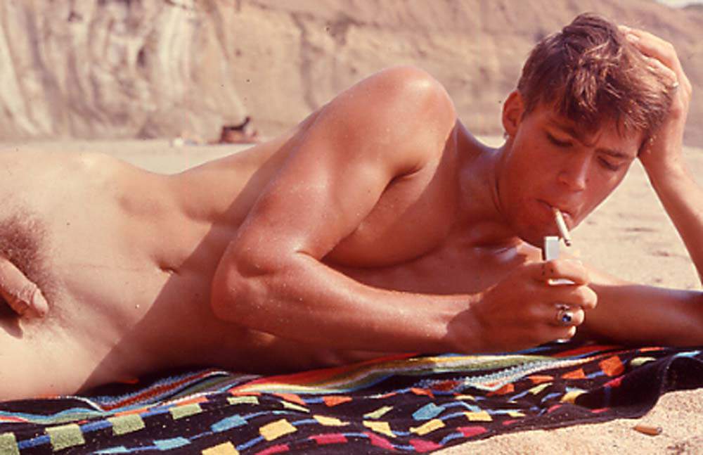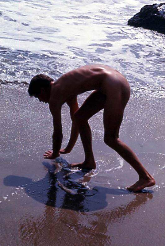 Connor photographed by J. Brian at San Gregorio nude beach in 1968.