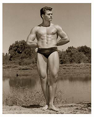 Twenty-year-old Rlee Brewer, tall, dark and handsome with a most-ideally proportioned and symmetrically defined physique, is perfectly at ease in each and every one of the poses he takes up.