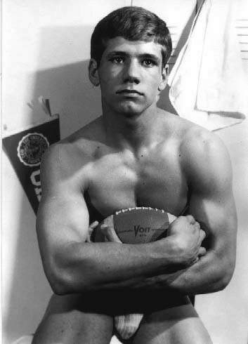 Rod Bauer poses with football for vintage beefcake photographer Champion.