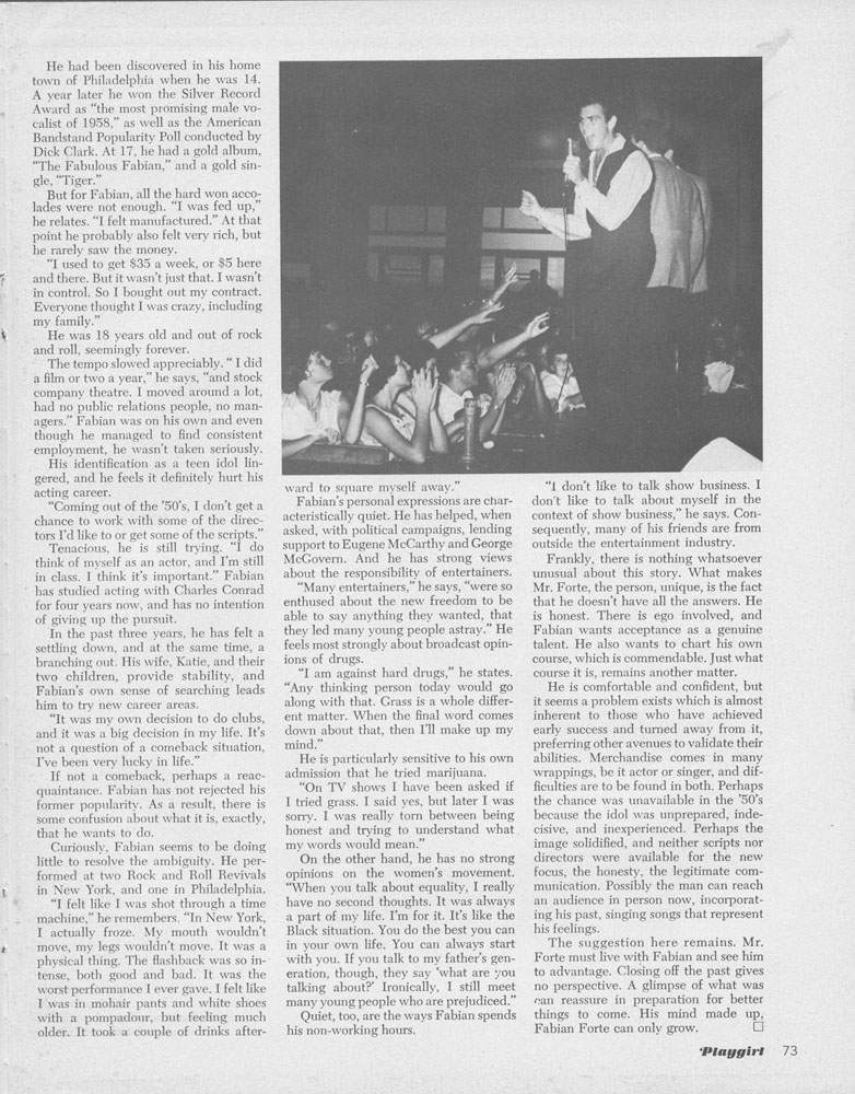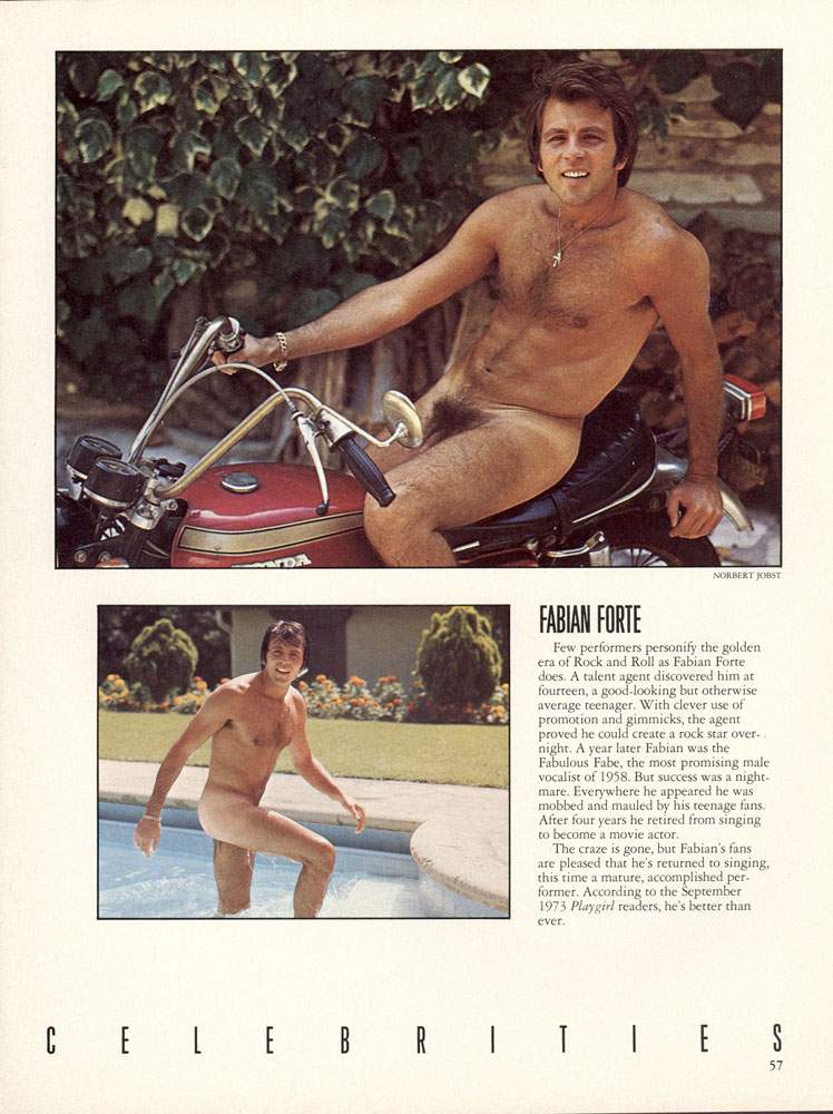 60s heartthrob Fabian Forte was popular as a musician and actor, and later published nudes in playgirl in the early 70s.