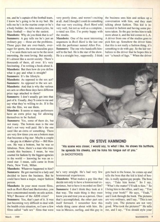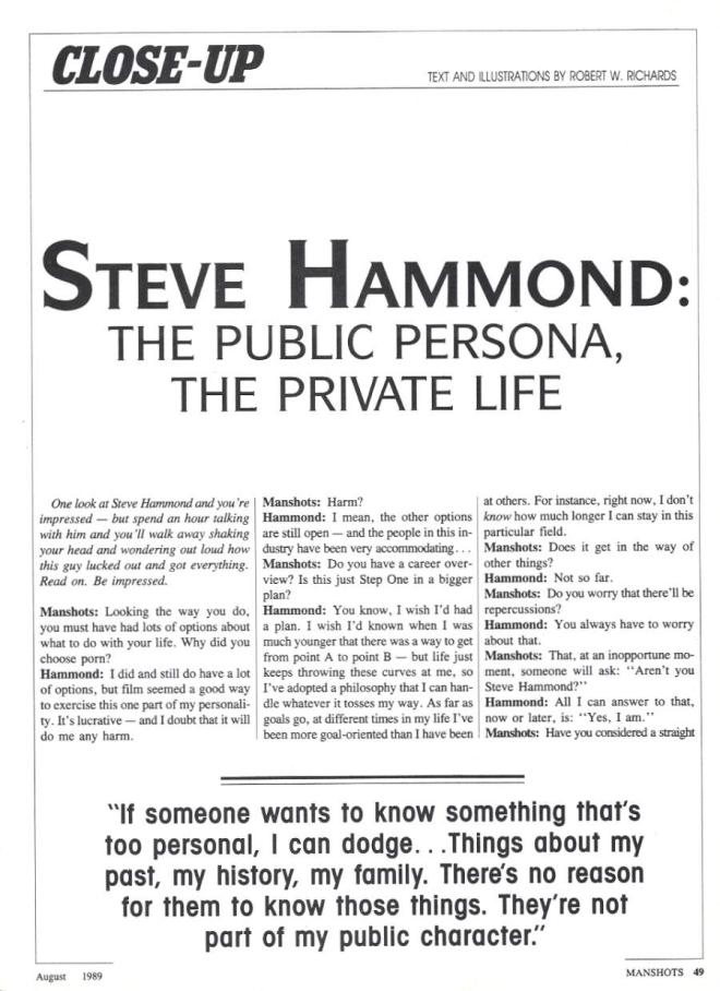 Steve Hammond in Manshots by Robert KurtzPosted on January 22, 2024December 15, 2023 Steve Hammond featured in September 1989’s Manshots magazine.