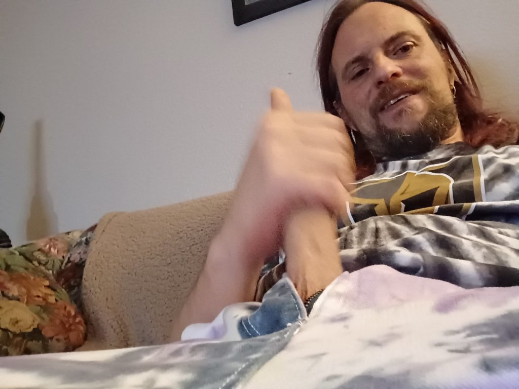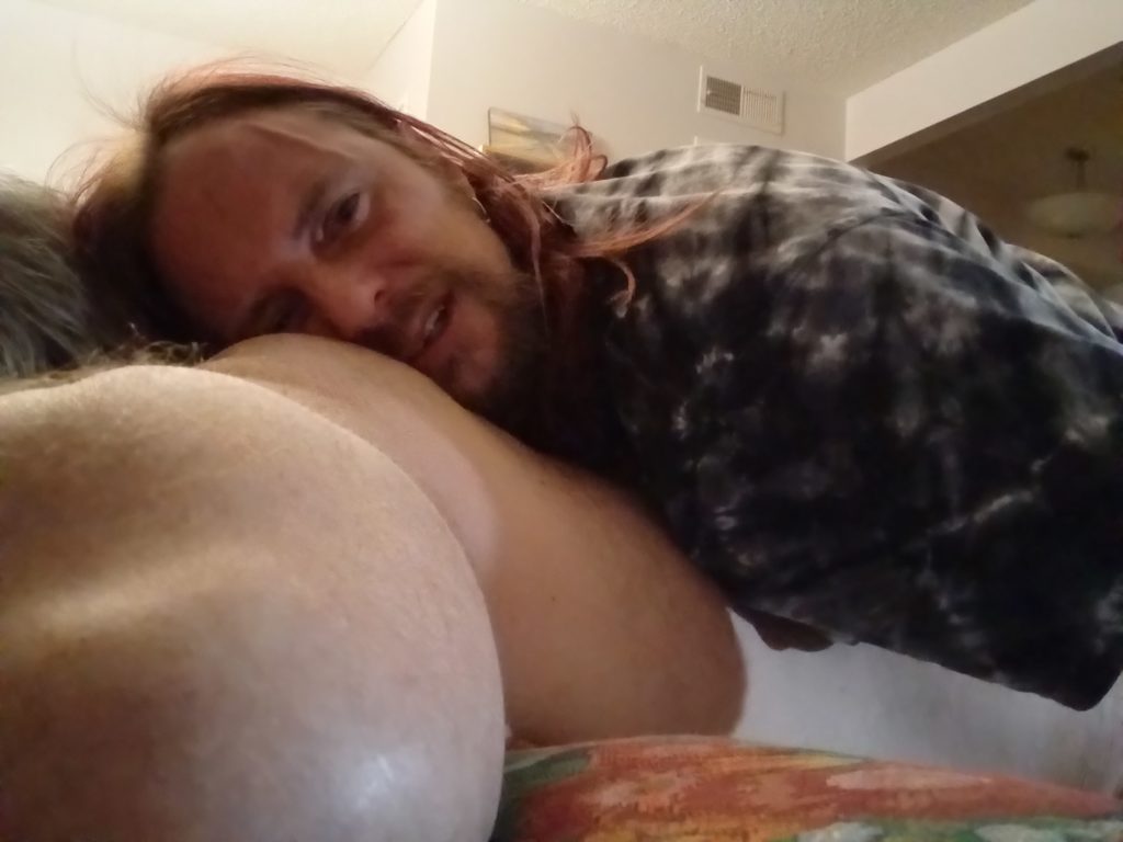 Showing off my penis in my tye-dye outfit led me to breeding Rubber Pig on the living room floor.
