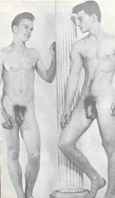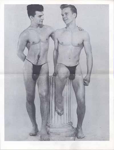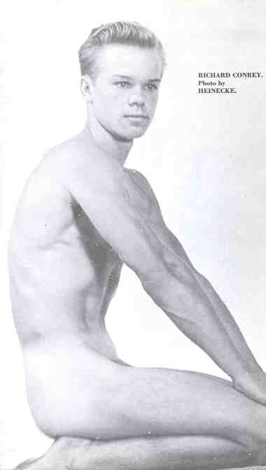 Richard Conrey photographed nude by Heineke in the 50s. Notice the inked on posing strap in the second image used to evade the postal inspectors. The ink was removable and would reveal the genitals beneath when gently rubbed with alcohol on a cotton ball.