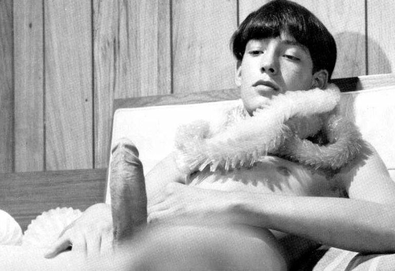 Ricky Ricardo with an afro photographed masturbating his huge uncut cock by Bob Kurtz in May 2006.
