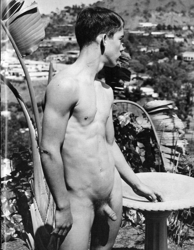 His friends know this young man as a lad who has spent a great deal of time keeping his body in good shape but always having time to get into a little devilment, Russ was a challenge to Lyric during the photography because he is an outdoors type by nature and the Los Angeles smog made it almost impossible to do any out of doors work but when the sun finally came out he rushed to the patio where the pictures that follow were taken.