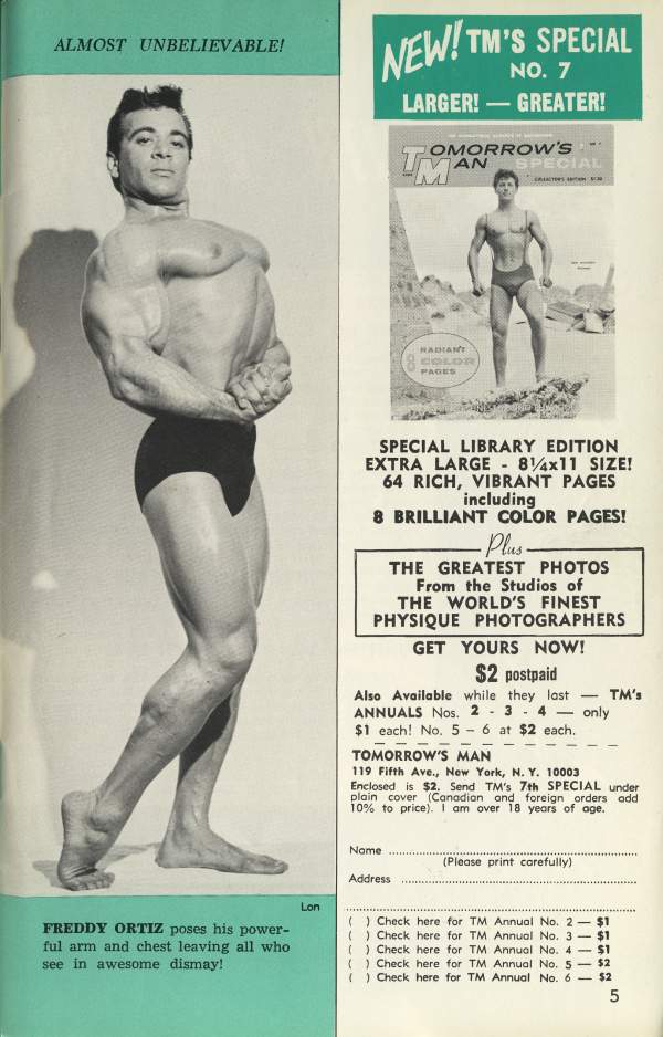 Freddy Ortiz by Robert KurtzPosted on June 22, 2024May 3, 2024 Fred Ortiz featured in Tomorrow’s Man in the 50s, photos by D and Lon of Olympia.