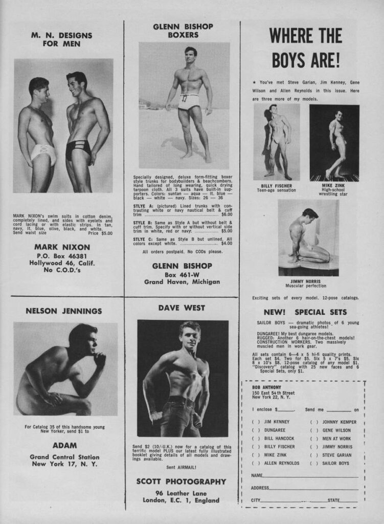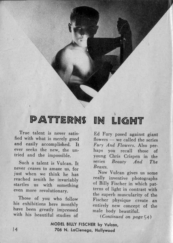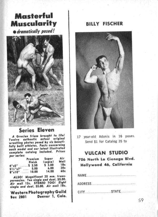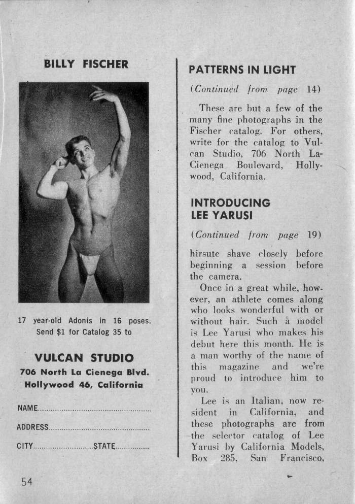 Billy Fischer by Robert KurtzPosted on August 7, 2024July 16, 2024 Billy Fischer modeled for Lyric, Vulcan, Champion, and several other early 50s photographers.