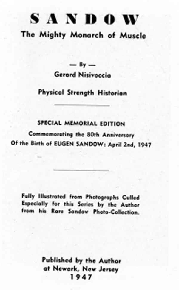 Sandow, the Mighty Monarch of Muscle published on the 80th anniversary of his birth in 1947.