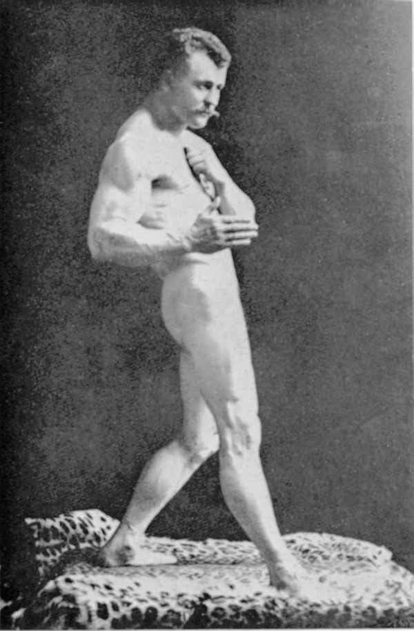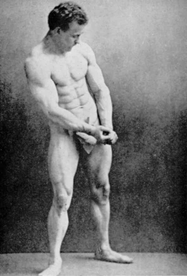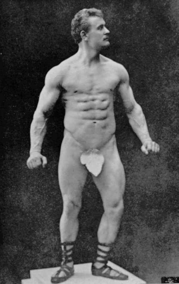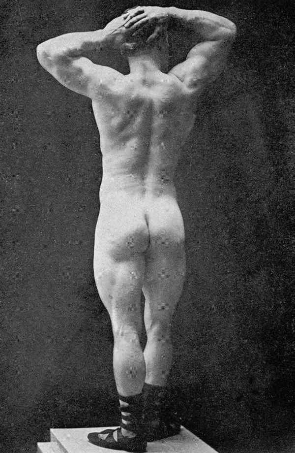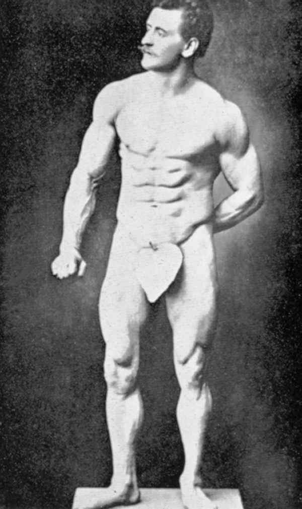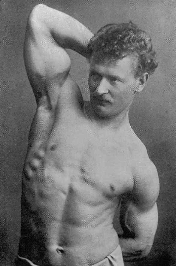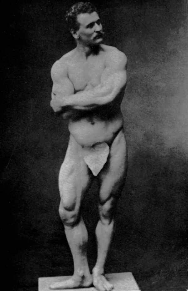 In his physical prime… from about 1886 to about 1904, Sandow served as the life model for many leading anatomists, sculptors, artists, photographers, et cetera. A few of the noted persons he modelled for were: Professor Virchow, a noted sculptor and anatomist, in Berlin; Prof. Krauk, a sculp- tor, in France; for Jef. Lambeaux and Charles Van Der Stap- pen, noted sculptors in Belgium; for Aubrey Hunt, R.A. a great English Painter, in Italy; for Messrs. Brucciani, the famous cast-makers of the British Museum, in England; and for such leading photographers as Van Der Weyde, H. Roland White, B. J. Falk, Napoleon Sarony (the famous official photographer of the Metropolitan Opera House, New York City), Warwick Brookes, George Steckel, et cetera.