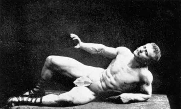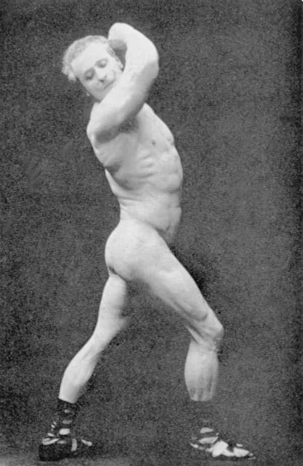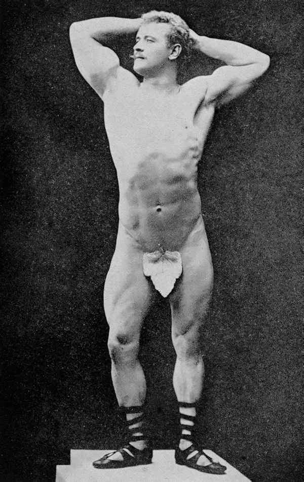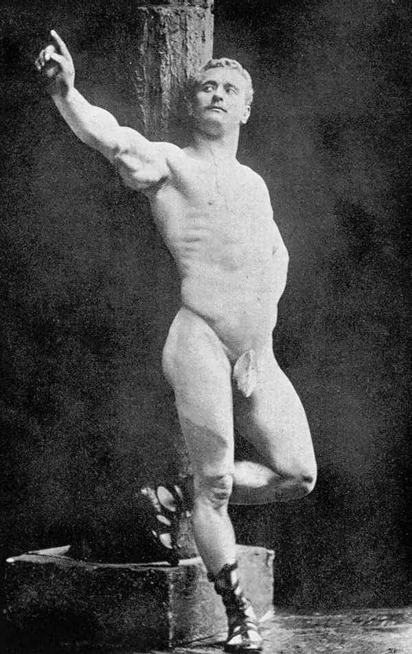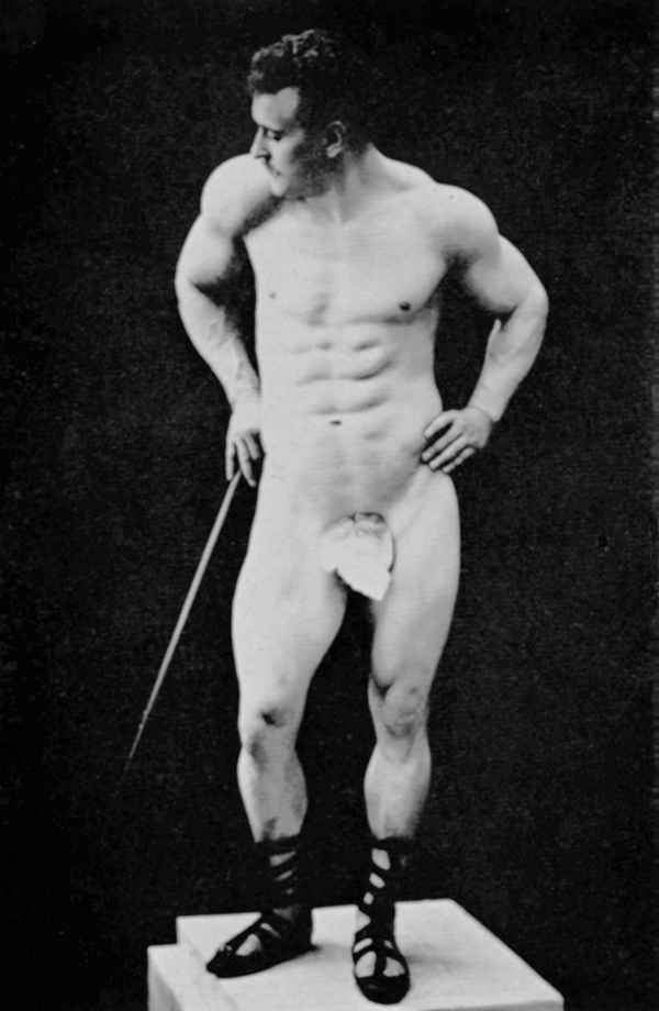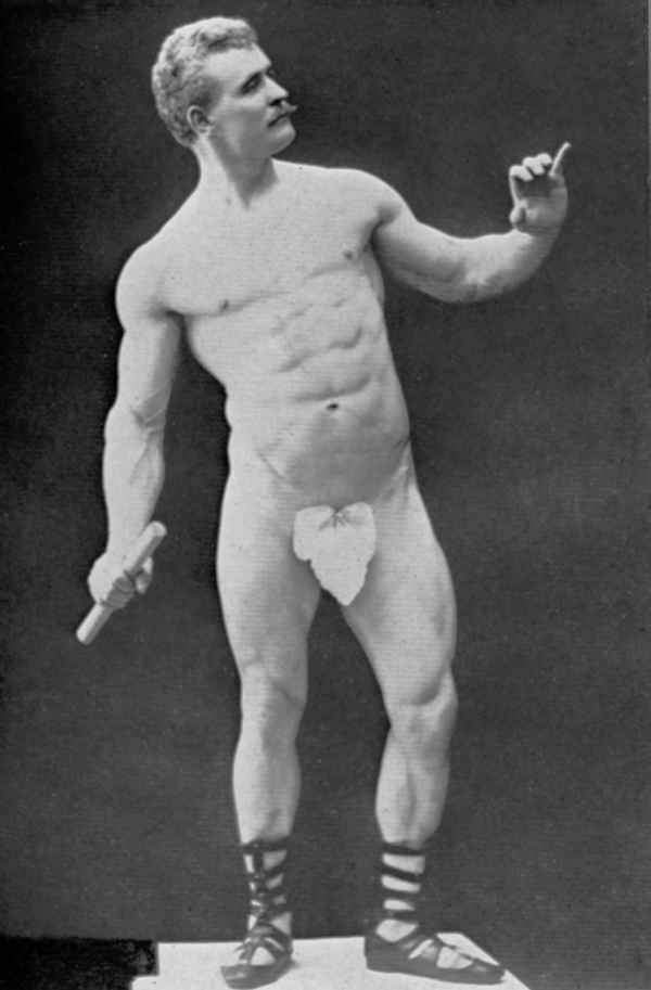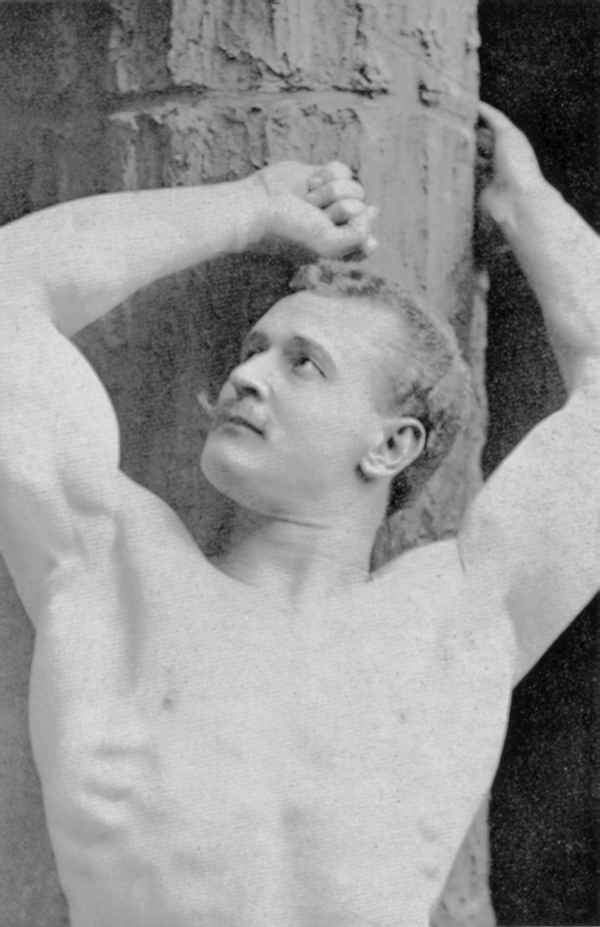 In his physical prime… from about 1886 to about 1904, Sandow served as the life model for many leading anatomists, sculptors, artists, photographers, et cetera. A few of the noted persons he modelled for were: Professor Virchow, a noted sculptor and anatomist, in Berlin; Prof. Krauk, a sculp- tor, in France; for Jef. Lambeaux and Charles Van Der Stap- pen, noted sculptors in Belgium; for Aubrey Hunt, R.A. a great English Painter, in Italy; for Messrs. Brucciani, the famous cast-makers of the British Museum, in England; and for such leading photographers as Van Der Weyde, H. Roland White, B. J. Falk, Napoleon Sarony (the famous official photographer of the Metropolitan Opera House, New York City), Warwick Brookes, George Steckel, et cetera.