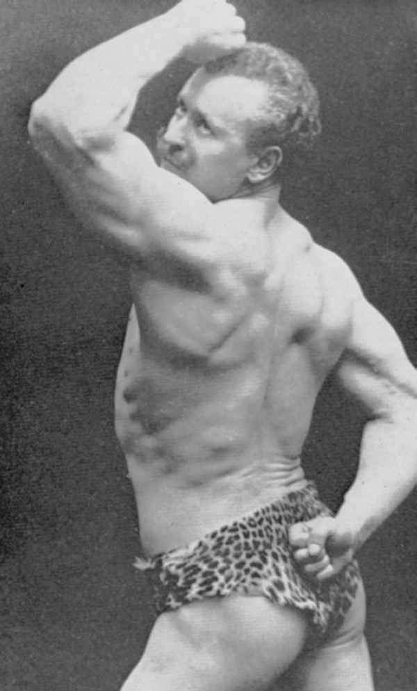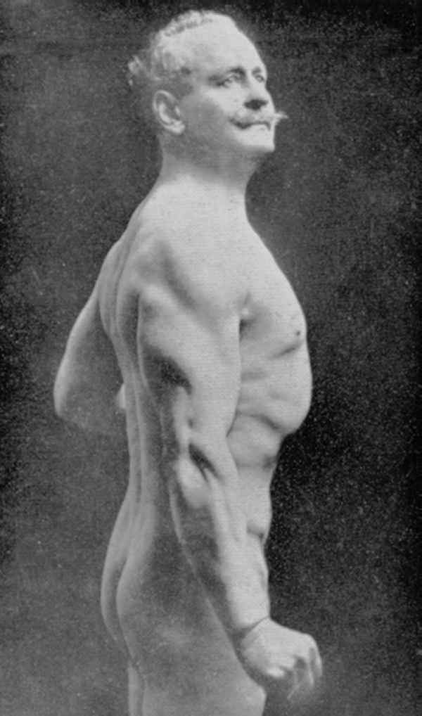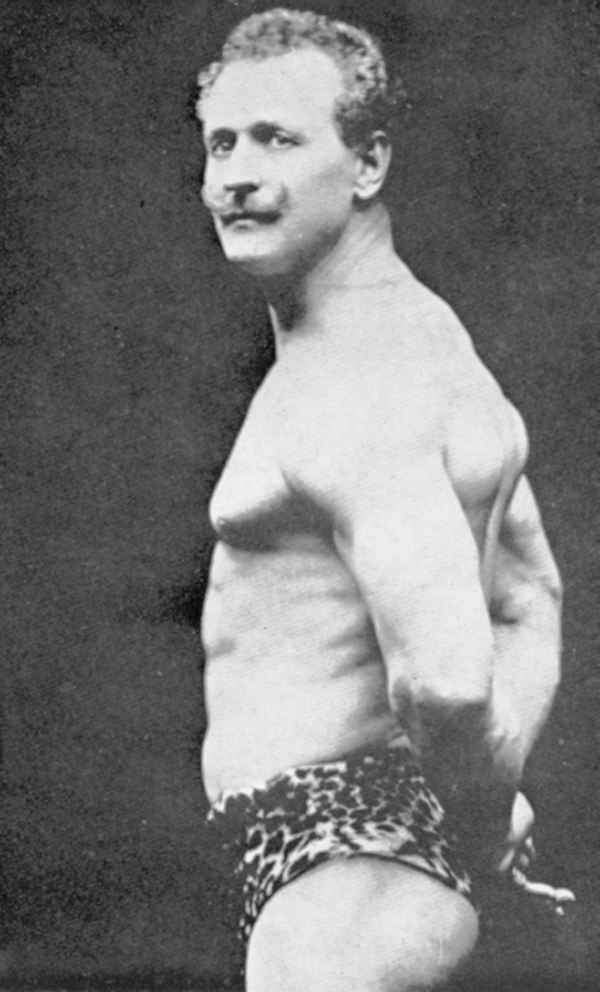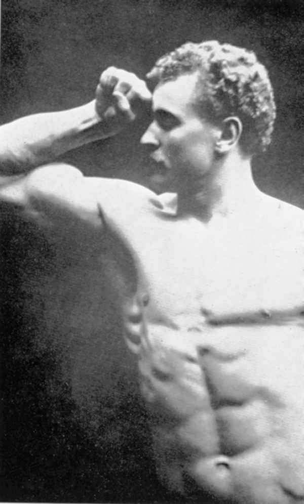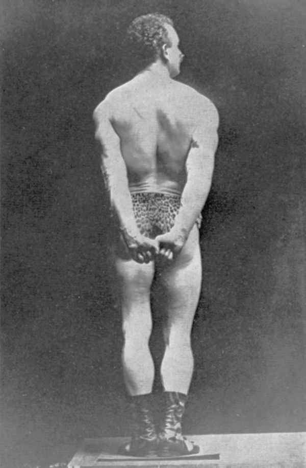 Perfect Man”, “The Unprecedented Sensation of the Cen- tury”, “The Strongest Man on Earth”, et cetera. His Ameri- can appearances showing him in muscle posing, muscle con- trol, classical posing, and feats of strength took the public by storm and he became the idol of the muscle worshippers, the lovers of the body beautiful including a group of promi- nent society women.