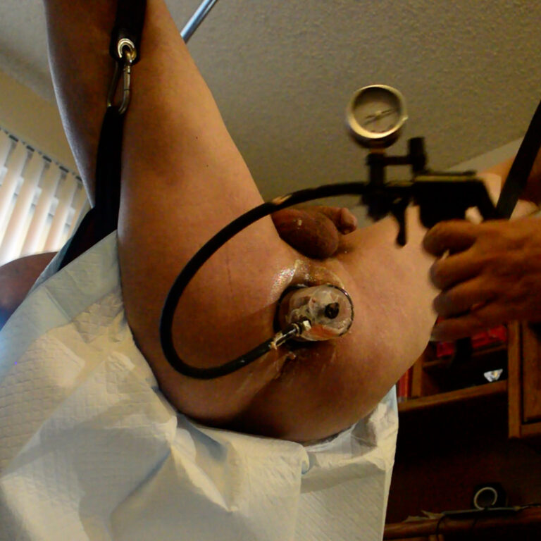 After trying out a butt pump at April’s Spring FFling, Rubber pig purchased one for himself. Here we are pumping up his ass and playing with it.