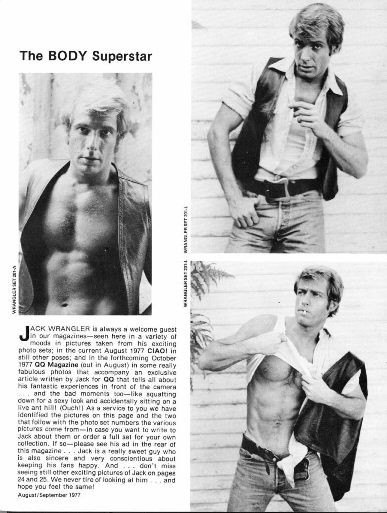Jack Wrangler in Body by Robert KurtzPosted on October 7, 2024August 13, 2024 Jack Wrangler appears in the November 1979 issue of Body Magazine.