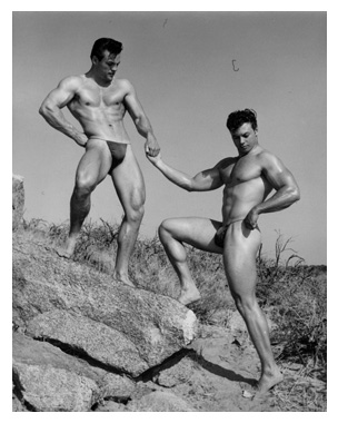 Kim Fox and Hugh Pendleton by Robert KurtzPosted on October 7, 2024August 13, 2024 Kim Fox and Hugh Pendleton pose outdoors together in posing straps for Bruce of LA.