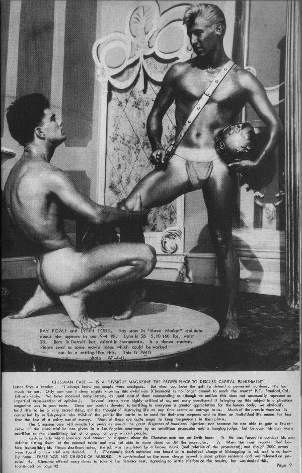 Ray Fowle & Friends in Physique Pictorial by Robert KurtzPosted on November 15, 2024August 16, 2024 Ray Fowle and friends appear in Physique Pictorial photographed by AMG. Also features Low Litel, Larry Marrianian, Don O’Connel, Reid Phippen,