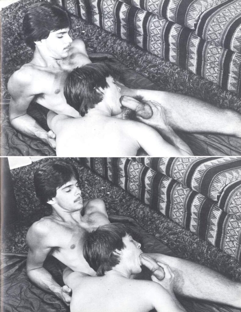 Jamie Wingo sucks and flip fucks with JW King bareback in this early 80s hardcore magazine from William Higgens.