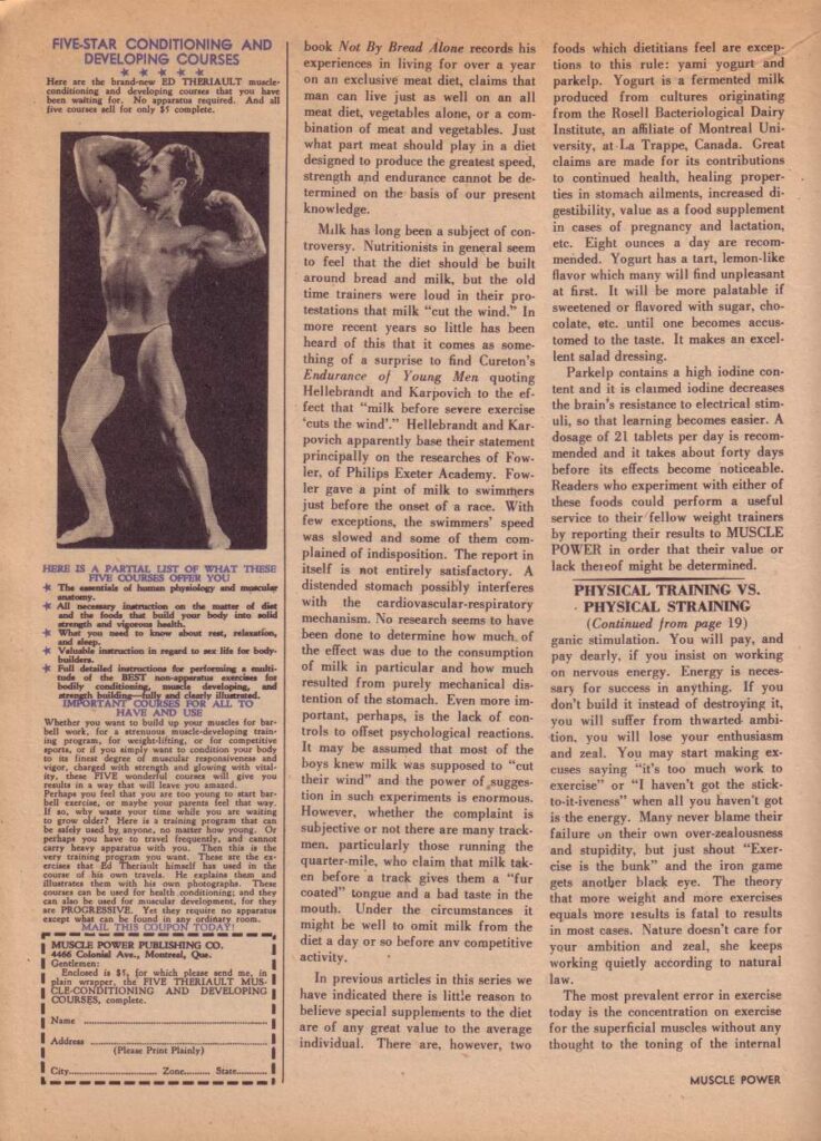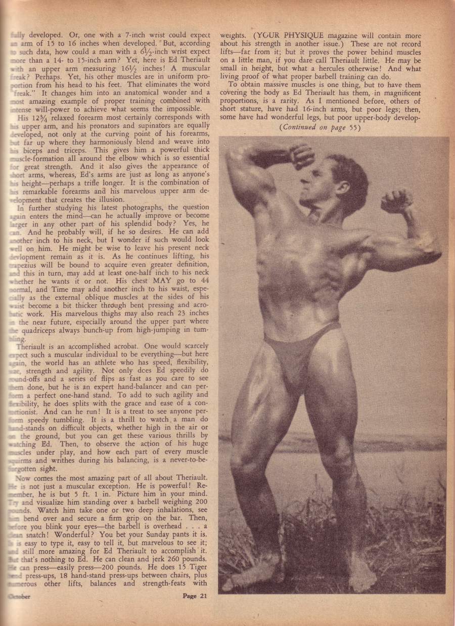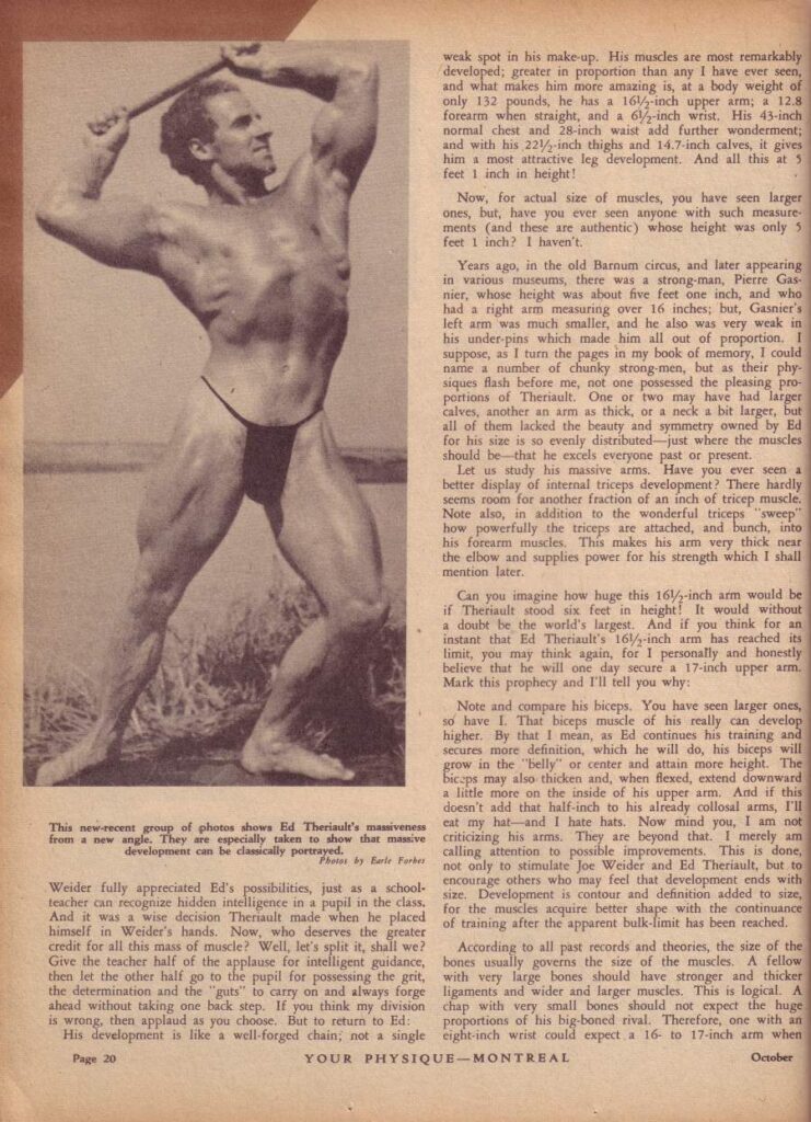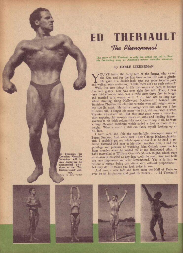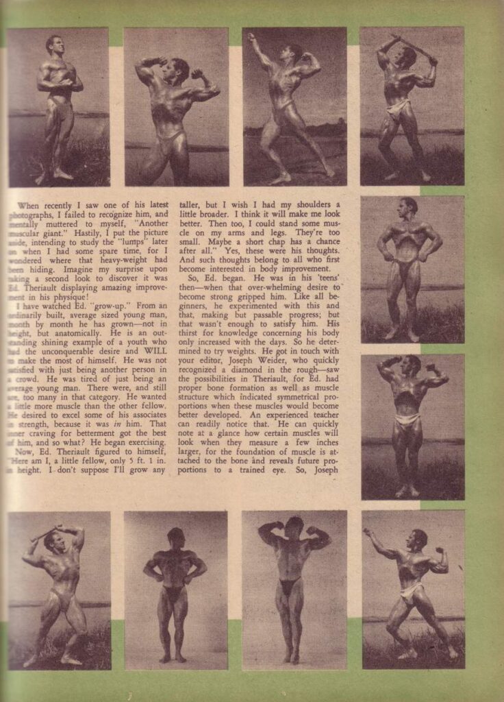 Ed Theriault in Muscle Power Nov 1948 by Robert KurtzPosted on November 30, 2024August 16, 2024 Mr Canada 1948 Ed Theriault in the November, 1948 edition of Muscle Power magazine.