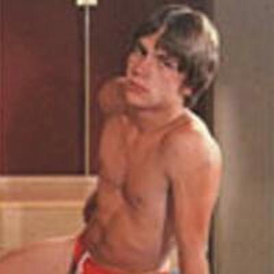 Jack Drago looks good posing with Crane, but it was his least favorite of the butt machines because it could only start at its highest speed. Photos by Kink.com October 2002.