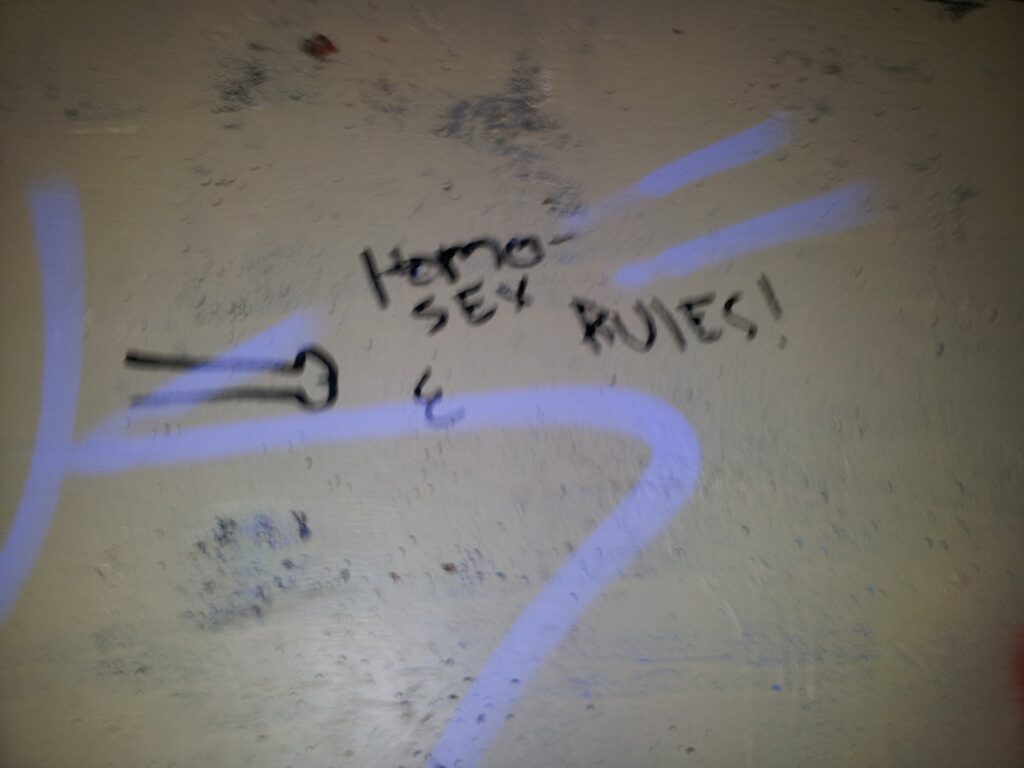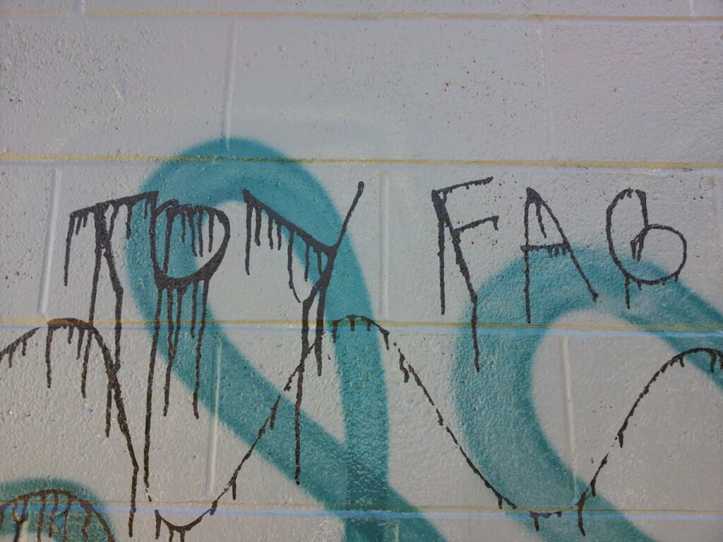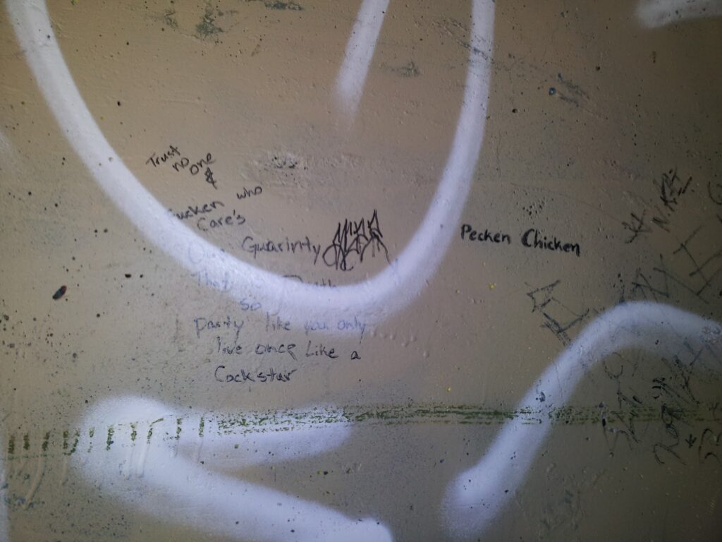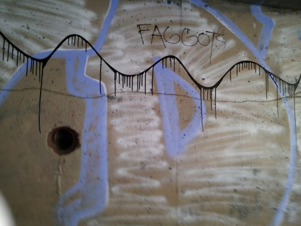 I was lookin pretty tough and with all this gay graffiti I thought I’d take a quick wank.