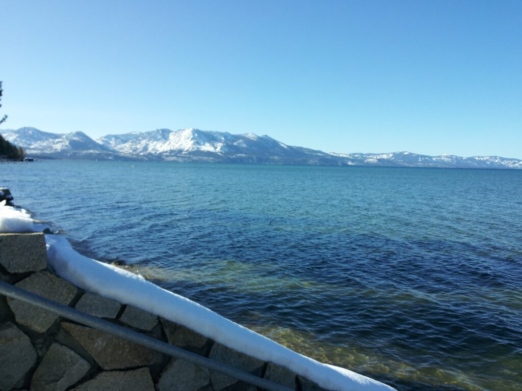Check out my dog wandering on the snowy beach at Lake Tahoe after.