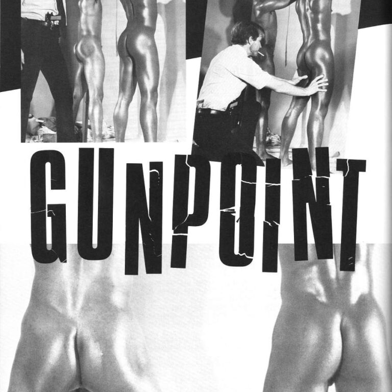 From the Stroke Magazine law enforcement issue “Gunpoint” where the detective forces two black perps to fuck each other at gunpoint as a perverse form of therapy.