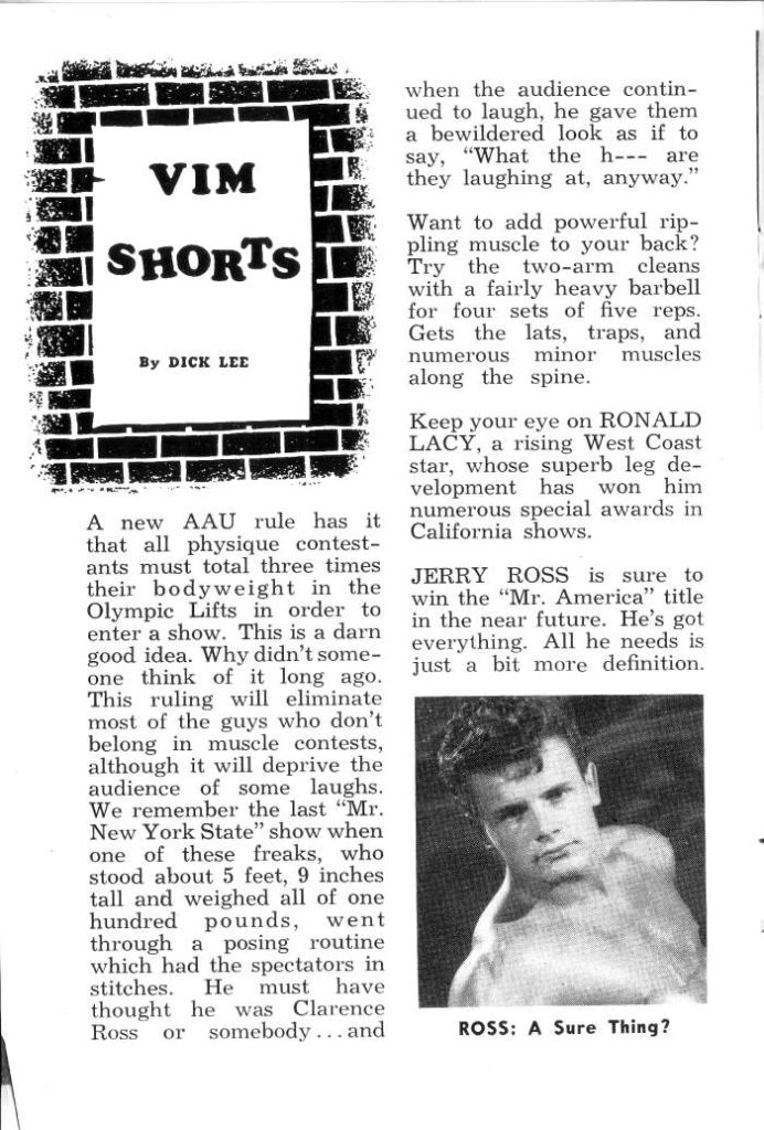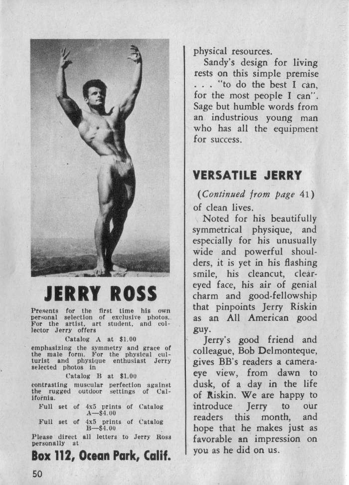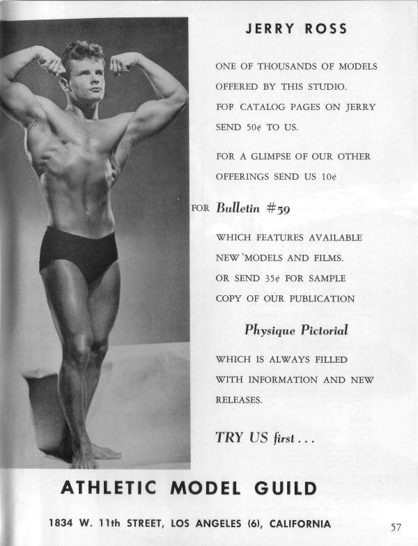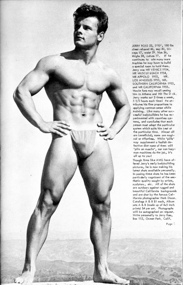 Jerry Ross Magazine Collection by Robert KurtzPosted on April 29, 2025March 12, 2025 Mr. California 1955 Jerry Ross photographed by AMG and Bruce of LA for various magazines in the 50s.