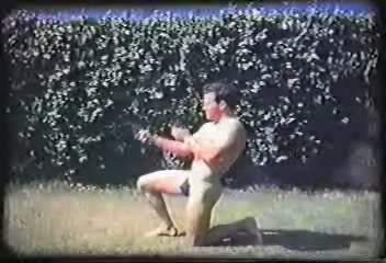Color 8mm reel of Blackie Preston posing with cowboy hat and gun for Bruce of LA in the mid 1960s.
