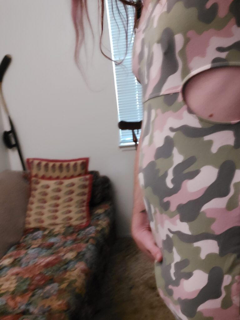 Three videos of me vibrating myself in my pink camo onesie with freshly dyed purple hair at my old place in Pacifica, California back in 2022.