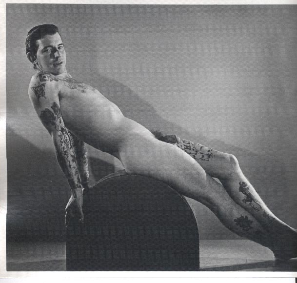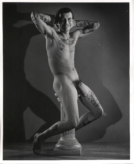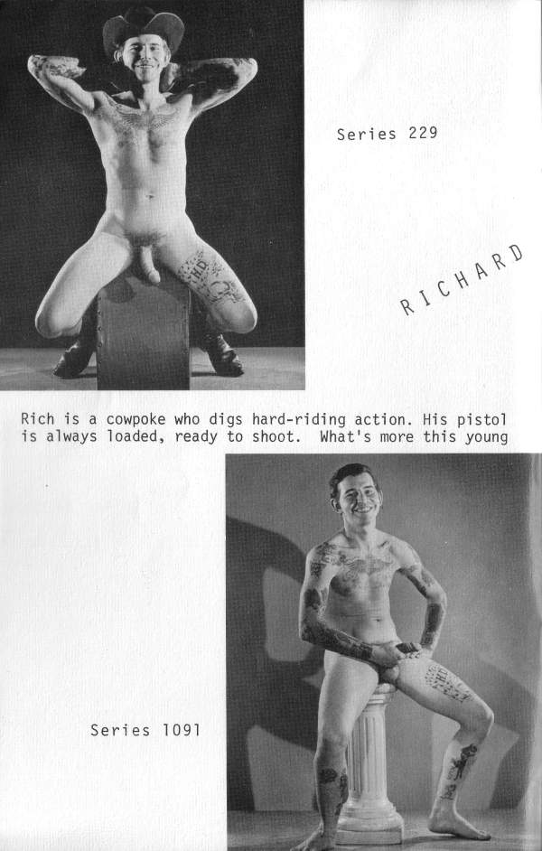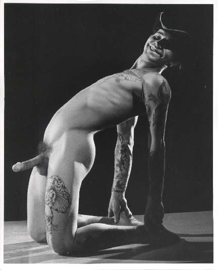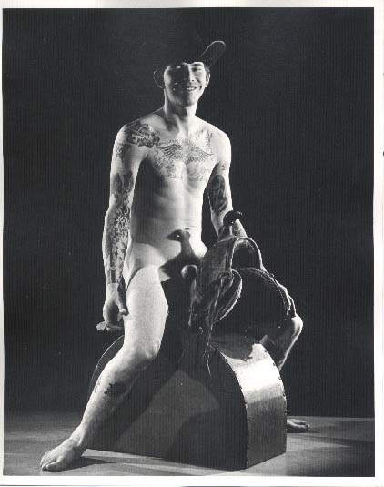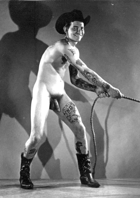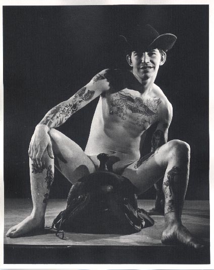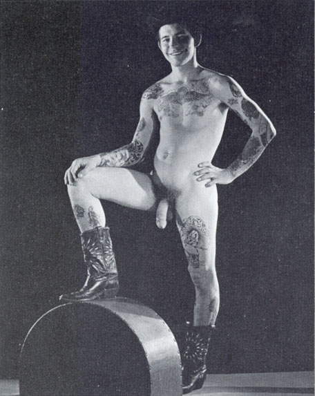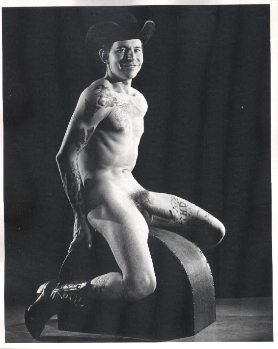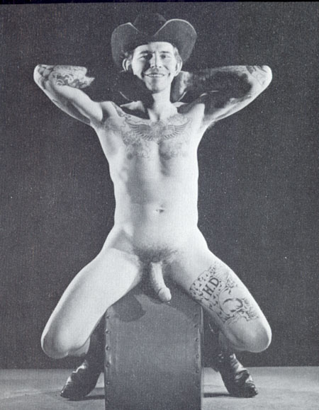 Tattooed cowboy hustler Richard Heys models for Bruce of LA in the mid 60s.